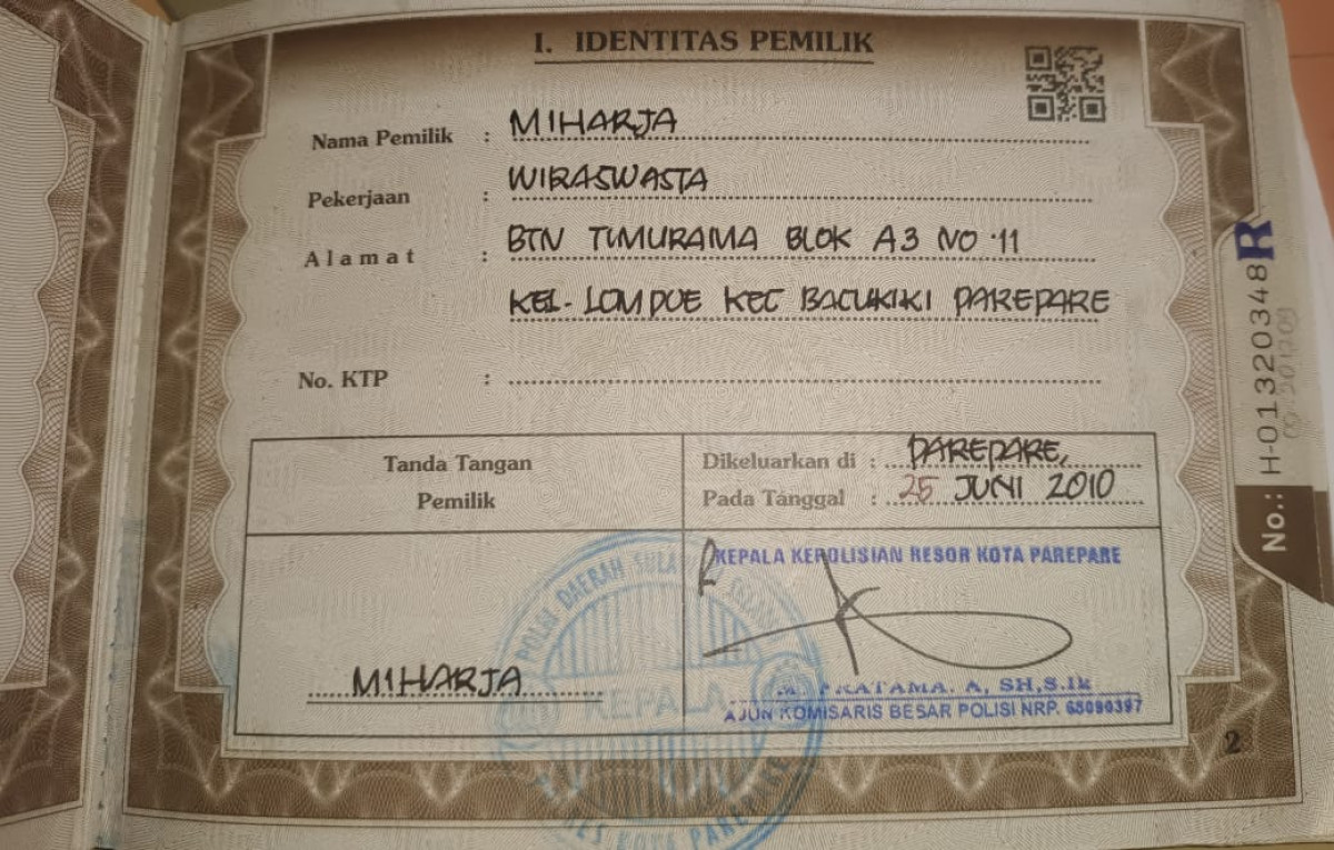 | STNK | : | Tidak Ada |