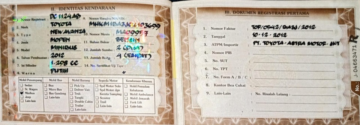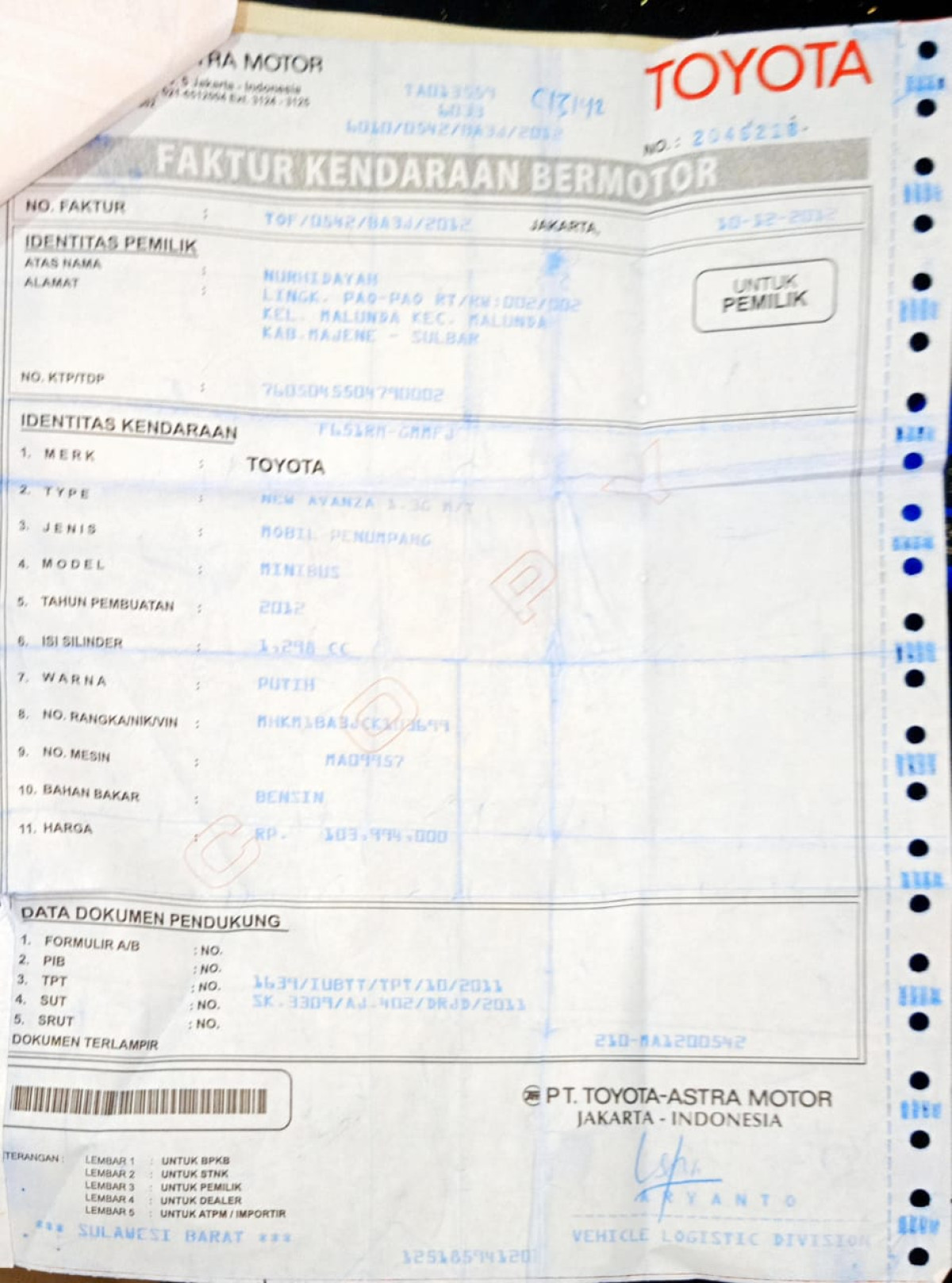 UNIT TIDAK DILAKUKAN PENGECEKAN OLEH TIM SMARTBID// SEBELUM MELAKUKAN PENAWARAN HARAP CEK KONDISI UNIT DAN DOKUMEN TERLEBIH DAHULU// WAJIB MENGHUBUNGI PIC DAN DATANG KE LOKASI UNTUK PENGECEKAN UNIT// UNIT DILELANG APA ADANYA PERMASALAHAN YANG TIMBUL DILUAR TANGGUNG JAWAB SMARTBID// PENGAMBILAN UNIT SLIDE H+2 DARI PELUNASAN // JIKA INGIN MENGAMBIL UNIT HARAP UNTUK KONFIRMASI DAHULU KE SMARTBID // JIKA YANG MENGAMBIL BIDDER HARAP MEMBAWA KTP ASLI // JIKA PENGAMBILAN DIWAKILKAN WAJIB MEMBAWA SURAT KUASA ASLI // UNIT DIKENAKAN BIAYA PPN 1,1% DARI HARGA TERBENTUK// LOKASI UNIT HUBUNGI Bpk. Lexi 0852-1582-4687 / CS PUSAT 081188089292// Mesin berfungsi, Body tergores, Alarm T/A, AC tidak dingin, Klakson tidak berfungsi, Seatbelt T/A, Accu suak, Head unit T/A, Alat mobil T/A, Setir imitasi, Knalpot imitasi, Headrest T/A, Sparkboard T/A, Cover plafon imitasi, Mesin rembes oli//Radiator | Shocbreakers (Fr) | Gasket Cylinder Head | Coil Ignition | Tire (Rr-L) | Gasket Cover Head | Rim (spare) | Tire (spare) | Muffler | Tire (Fr-R) | Spring (RR) | Spring (FR) | Tire (Rr-R) | Fan Belt | Remote | Tire (Fr-L) | Engine Services (Light) | Clutch Bearing | Aircon Evaporator | Radiator Fan | Clutch Plate | Rack Steer | Brake Master | Brake Pad (Rr) | Brake Pad (Fr) | Battery | Injector | Spark Plug(s)/Combination Meter | Aircon Panel | Carpet Floor (RR) | Horn | Carpet Floor (Mid) | Carpet Floor (FR-R) | Tool Kit | Bolt Crane and Jack | Carpet Floor (FR-L) | Interior Saloon | Seatbelt (Fr-R) | Seatbelt (Rr-R) | Seatbelt (Fr-L) | Seatbelt (Rr-L) | Headrest (M-L) | Headrest (Fr-R) | Carpet | Headrest (Fr-L) | Headrest (M-R) | Ceiling Lamp (Rr) | Ceiling Lamp (Fr) | Steering-wheel | Ceiling Trim | Head Unit/Mirror (L) | Headlight (Fr-L) | Turn Lamp (Fr-L) | Headlight (Fr-R) | Mirror (R ) | Fender Repair (Rr-R) | Fender Repair (Rr-L) | Side Skirt Repair (R) | Side Skirt Repair (L) | Door Repair (Trunk) | Fender Repair (Fr-R) | Windshield Wiper | Roof Repair | Rim cover (Rr-R) | Rim cover (Rr-L) | Engine Hood Repair | Antenna | Fender Repair (Fr-L) | Fog Lamp (L) | Rim cover (Fr-R) | Fog Lamp (R ) | Rim cover (Fr-L) | Turn Lamp (Fr-R) | Bumper Repair (Fr) | Bumper Repair (Rr)