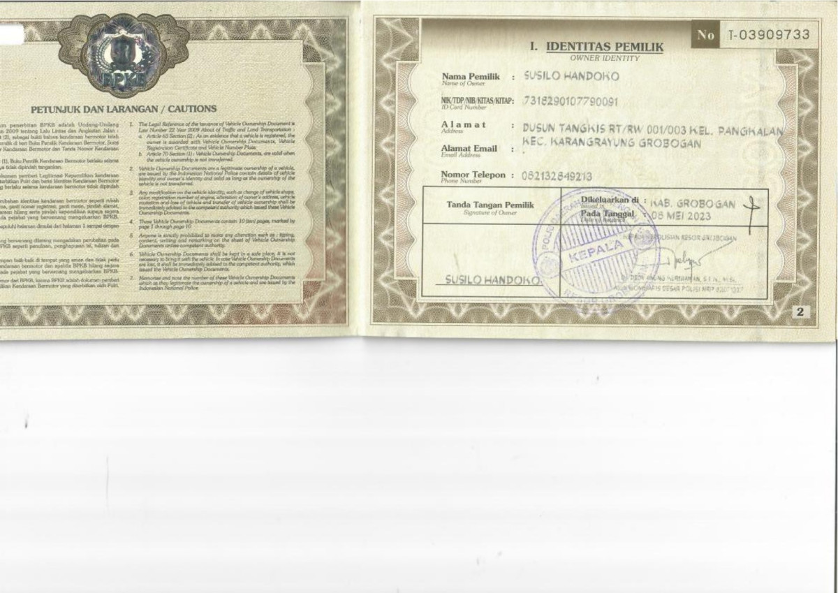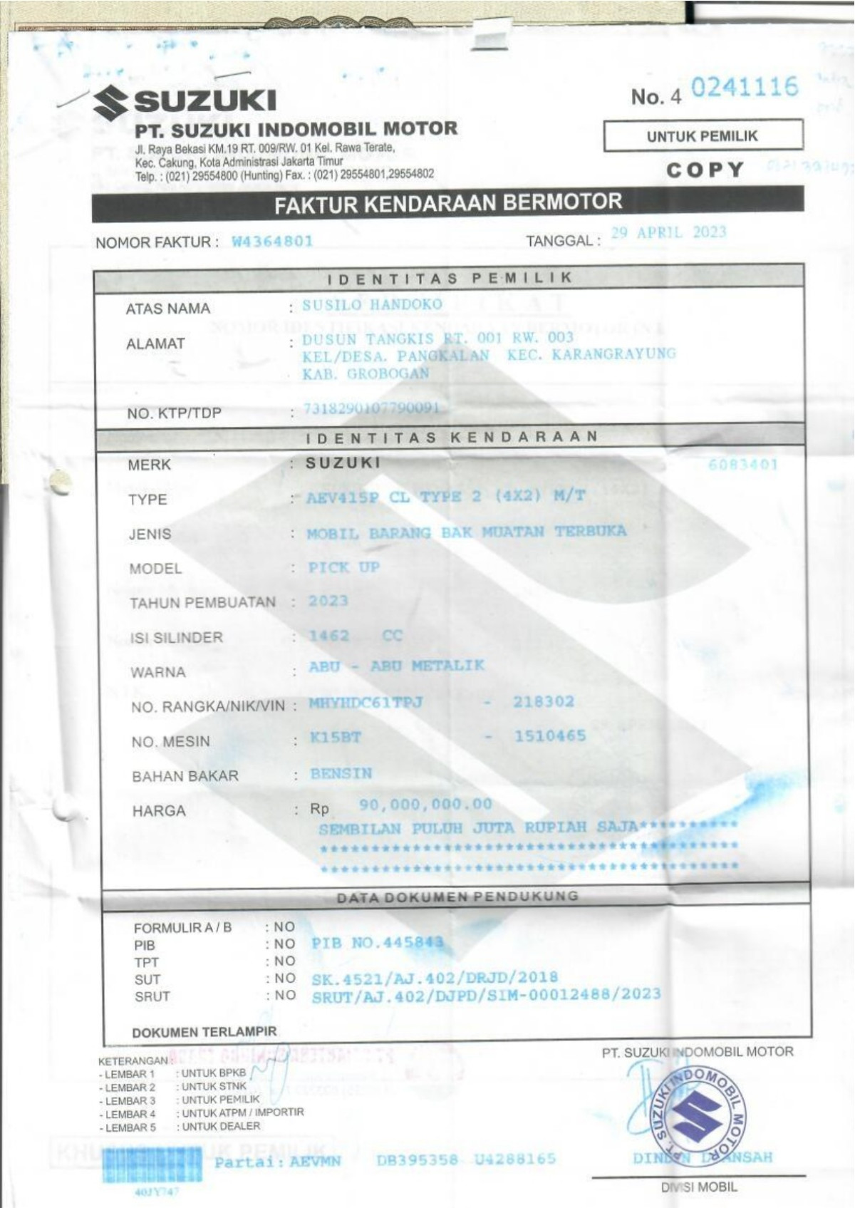 SEBELUM MELAKUKAN PENAWARAN UNIT PESERTA LELANG WAJIB MELAKUKAN PENGECEKAN UNIT DAN DOKUMEN TERLEBIH DAHULU // PIC RUDAL 0821 9140 0425 / MUHAMMAD DARWIS 082348587430 // UNIT DIKENAKAN BIAYA PPN 1.1% DARI HARGA TERBENTUK // KARTU KEUR T/A HANYA ADA KERTAS LEMBAR KEUR