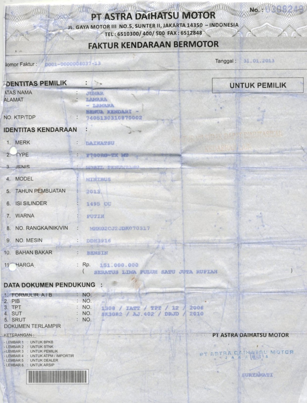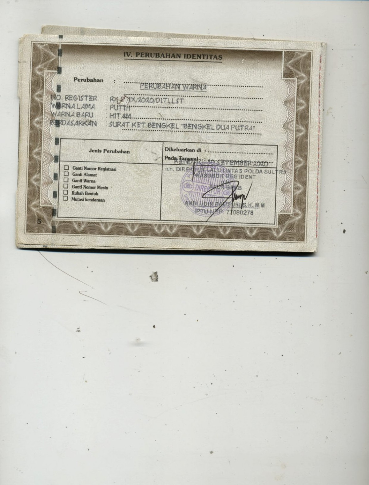 SEBELUM MELAKUKAN PENAWARAN UNIT PESERTA LELANG WAJIB MELAKUKAN PENGECEKAN UNIT DAN DOKUMEN TERLEBIH DAHULU // PIC AHMAD 082345278181 IKRAM 085241587738 // UNIT DIKENAKAN BIAYA PPN 1.1% DARI HARGA TERBENTUK // SURAT KETERANGAN PERUBAHAN WARNA DARI BENGKEL T/A //