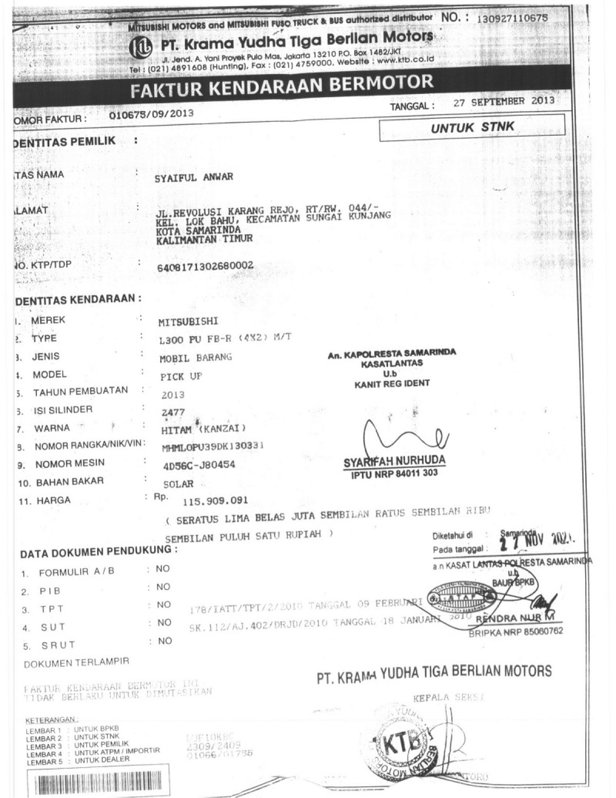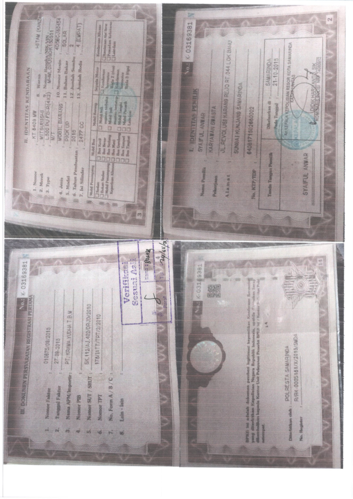 | No. Polisi | : | KT 8409 MW |
