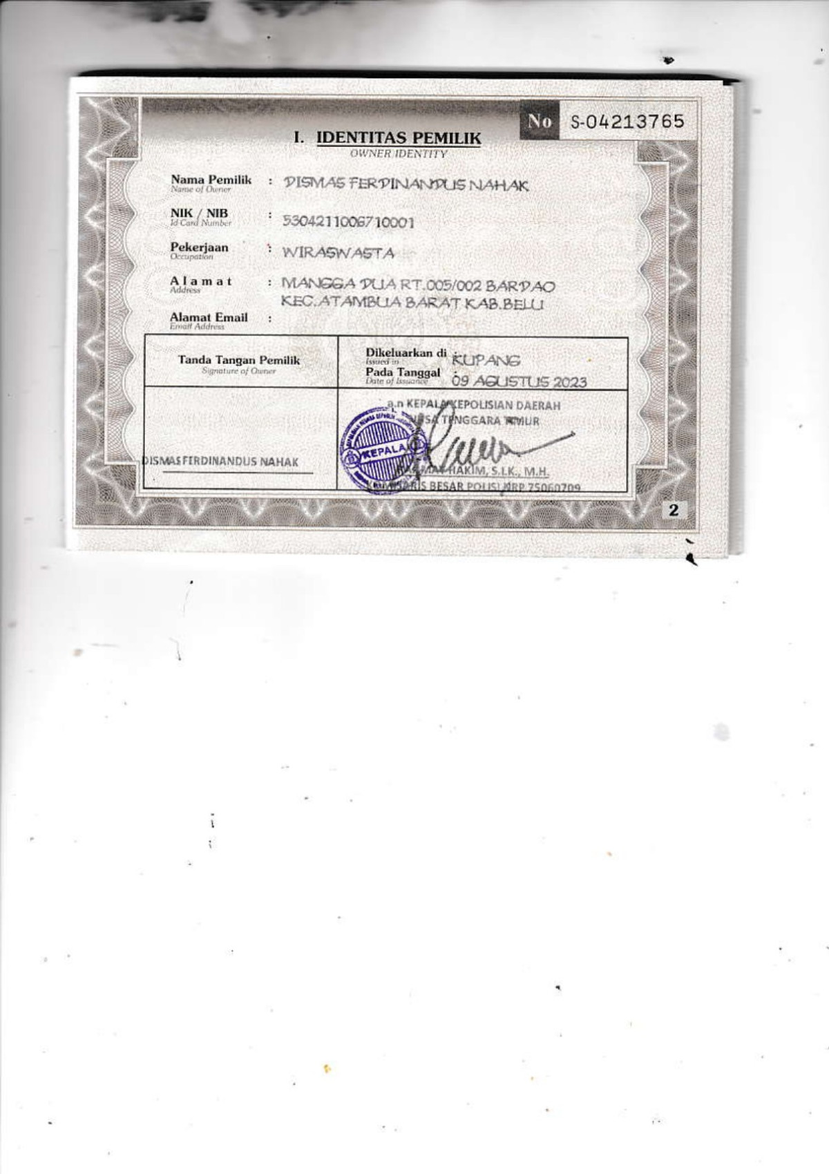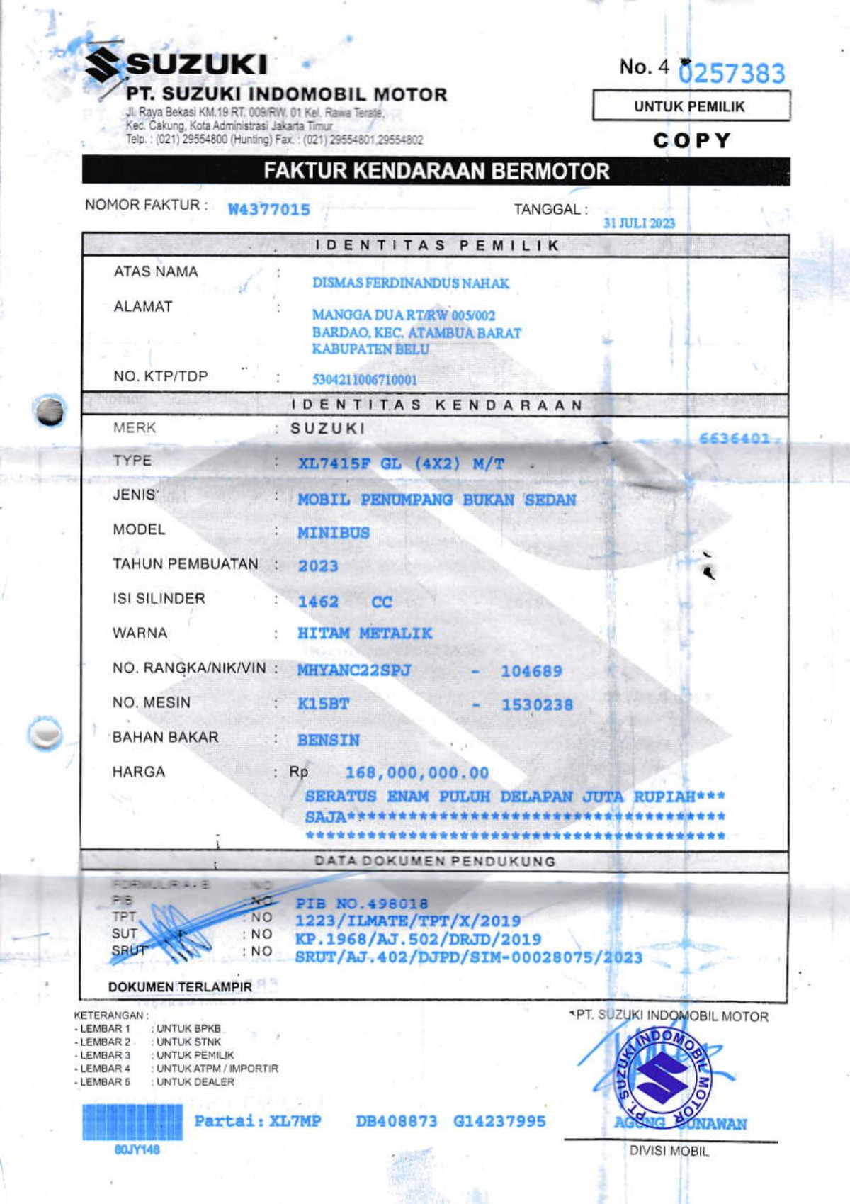 STNK TIDAK ADA // SEBELUM MELAKUKAN PENAWARAN UNIT PESERTA LELANG WAJIB MELAKUKAN PENGECEKAN UNIT DAN DOKUMEN TERLEBIH DAHULU // PIC PAK NATAN 081338280981 / INSPEKSI PAK GAD 085338212232 // UNIT DIKENAKAN BIAYA PPN 1.1% DARI HARGA TERBENTUK