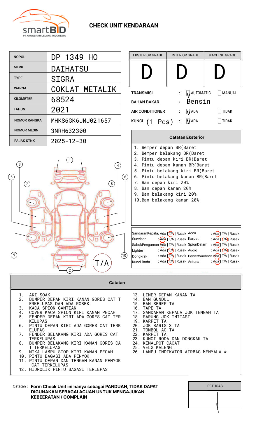 SEBELUM MELAKUKAN PENAWARAN UNIT PESERTA LELANG WAJIB MELAKUKAN PENGECEKAN UNIT DAN DOKUMEN TERLEBIH DAHULU // PIC RUDAL 0821 9140 0425 / MUHAMMAD DARWIS 082348587430 // UNIT DIKENAKAN BIAYA PPN 1.1% DARI HARGA TERBENTUK //