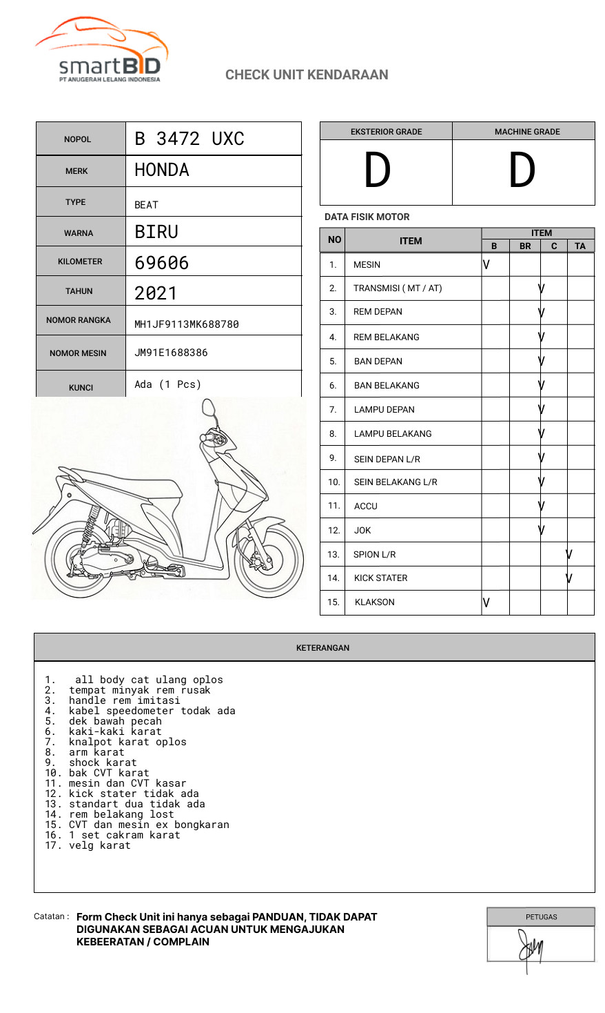 SEBELUM MELAKUKAN PENAWARAN UNIT PESERTA LELANG WAJIB MELAKUKAN PENGECEKAN UNIT DAN DOKUMEN TERLEBIH DAHULU // PIC WAHYU : 082124062748// UNIT DIKENAKAN BIAYA PPN 1.1% DARI HARGA TERBENTUK //