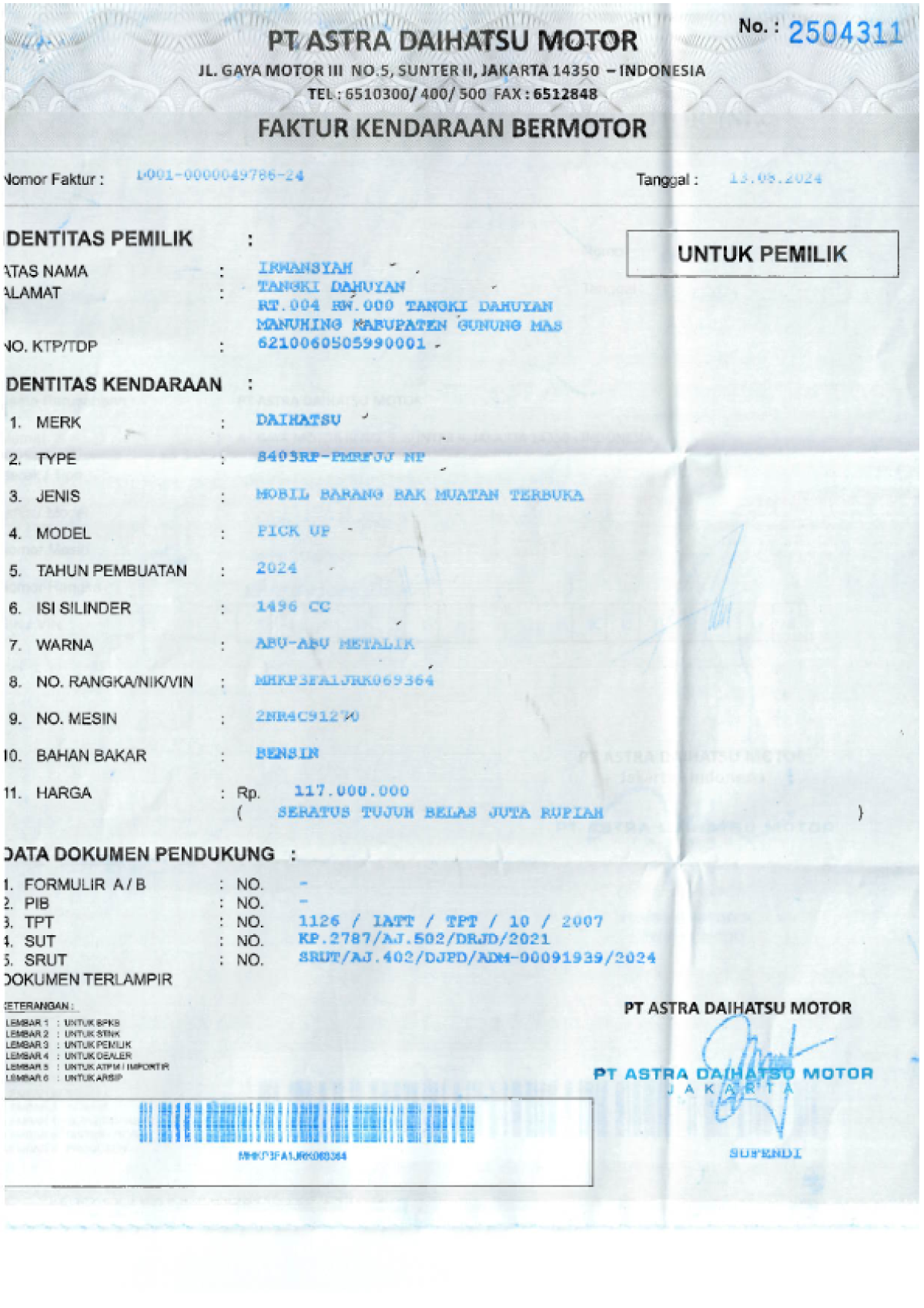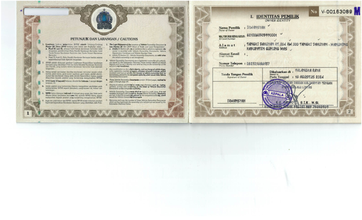 | No. Polisi | : | KH 8562 HB |