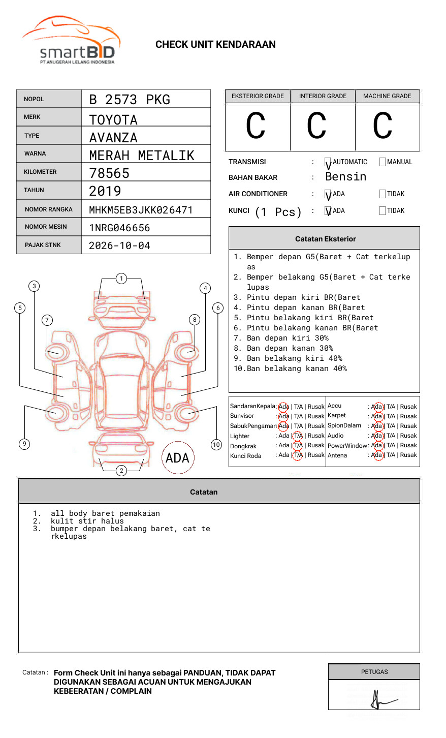 SEBELUM MELAKUKAN PENAWARAN UNIT PESERTA LELANG WAJIB MELAKUKAN PENGECEKAN UNIT DAN DOKUMEN TERLEBIH DAHULU // PIC WAHYU : 082124062748// FAKTUR BERUPA FOTOCOPY
