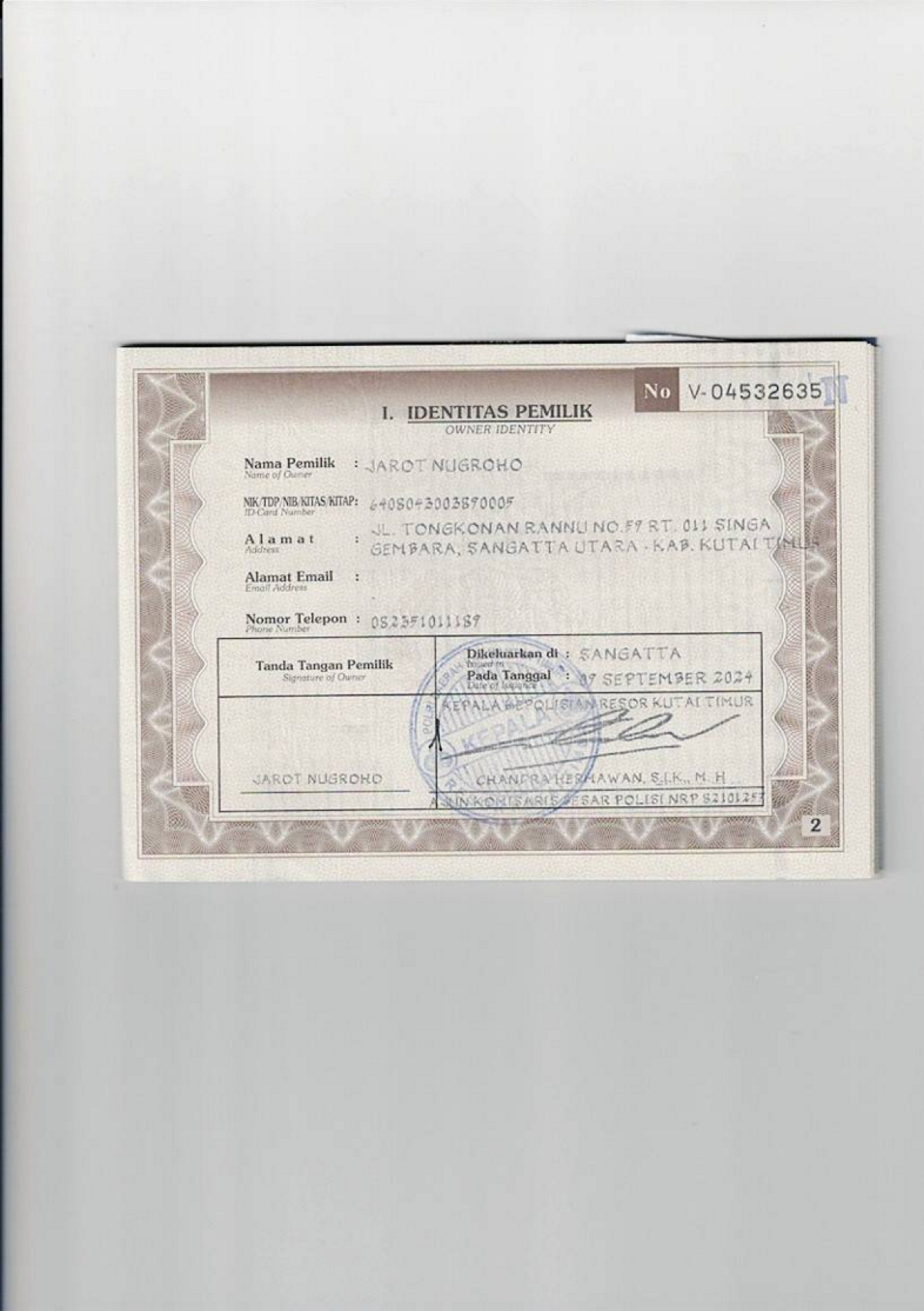 | KWT Blangko | : | Tidak Ada |