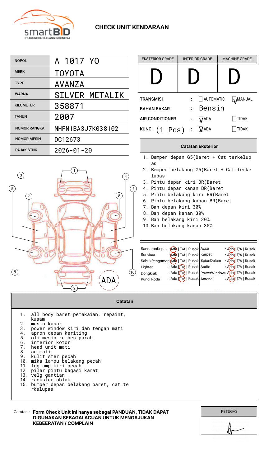 SEBELUM MELAKUKAN PENAWARAN HARAP CEK KONDISI UNIT SERTA DOKUMEN TERLEBIH DAHULU// UNIT DIKENAKAN BIAYA PPN 1,1% DARI HARGA TERBENTUK// PIC WAHYU : 082124062748