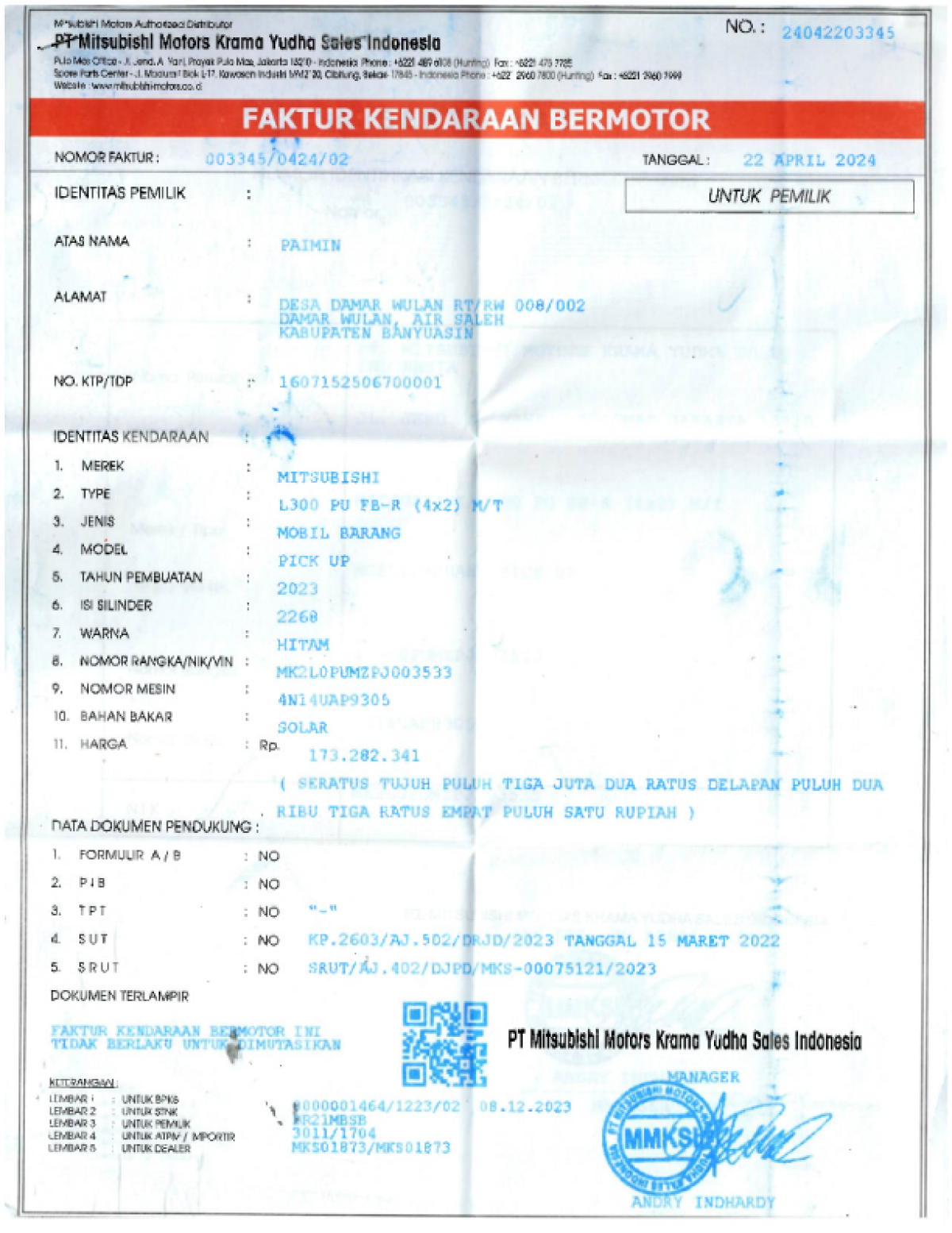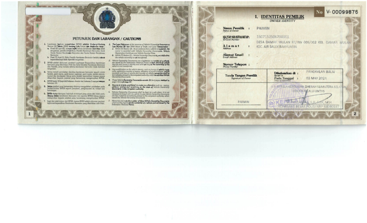 | No. Rangka | : | MK2L0PUMZPJ003533 |