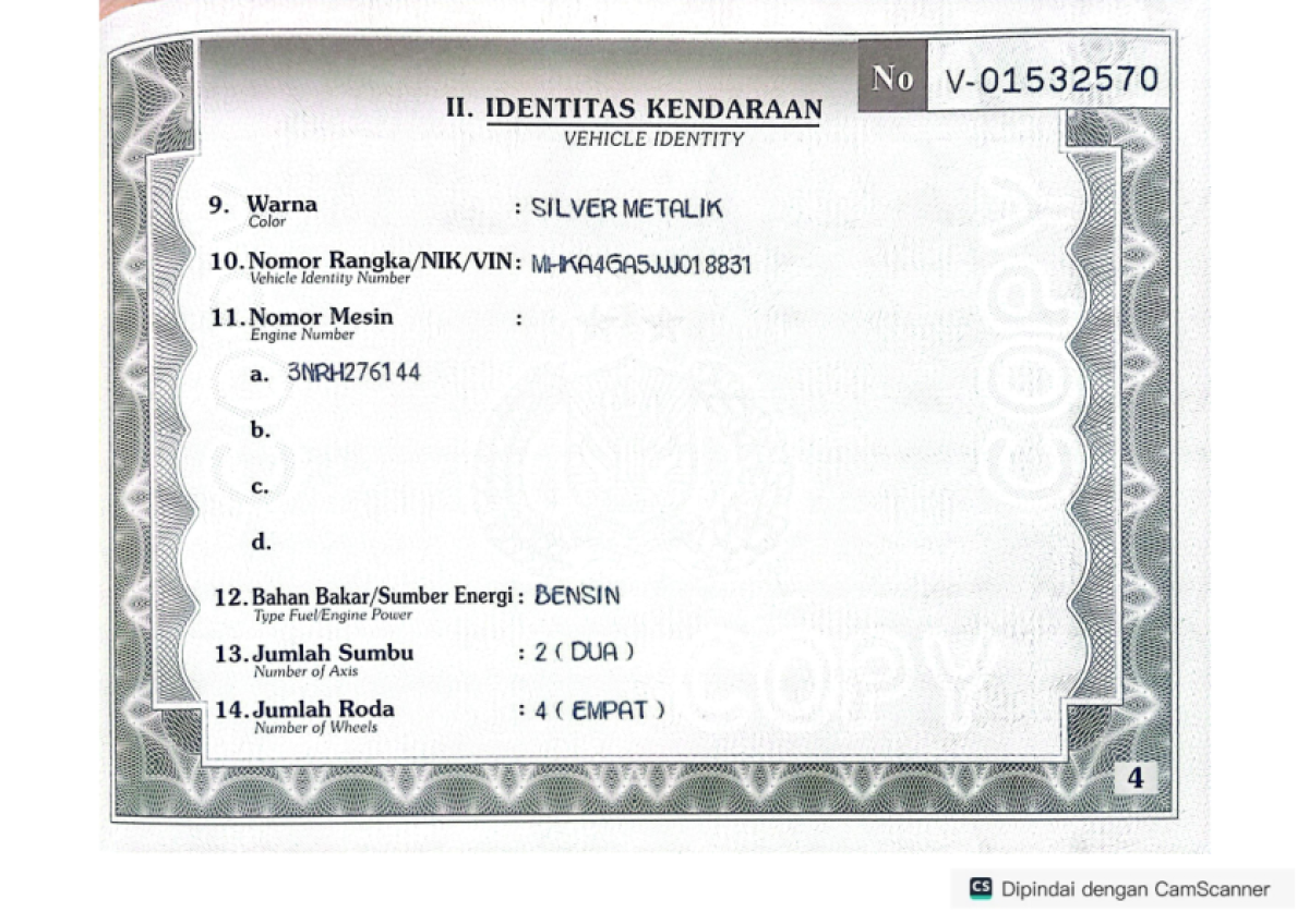 | No. Rangka | : | MHKA4GA5JJJ018831 |