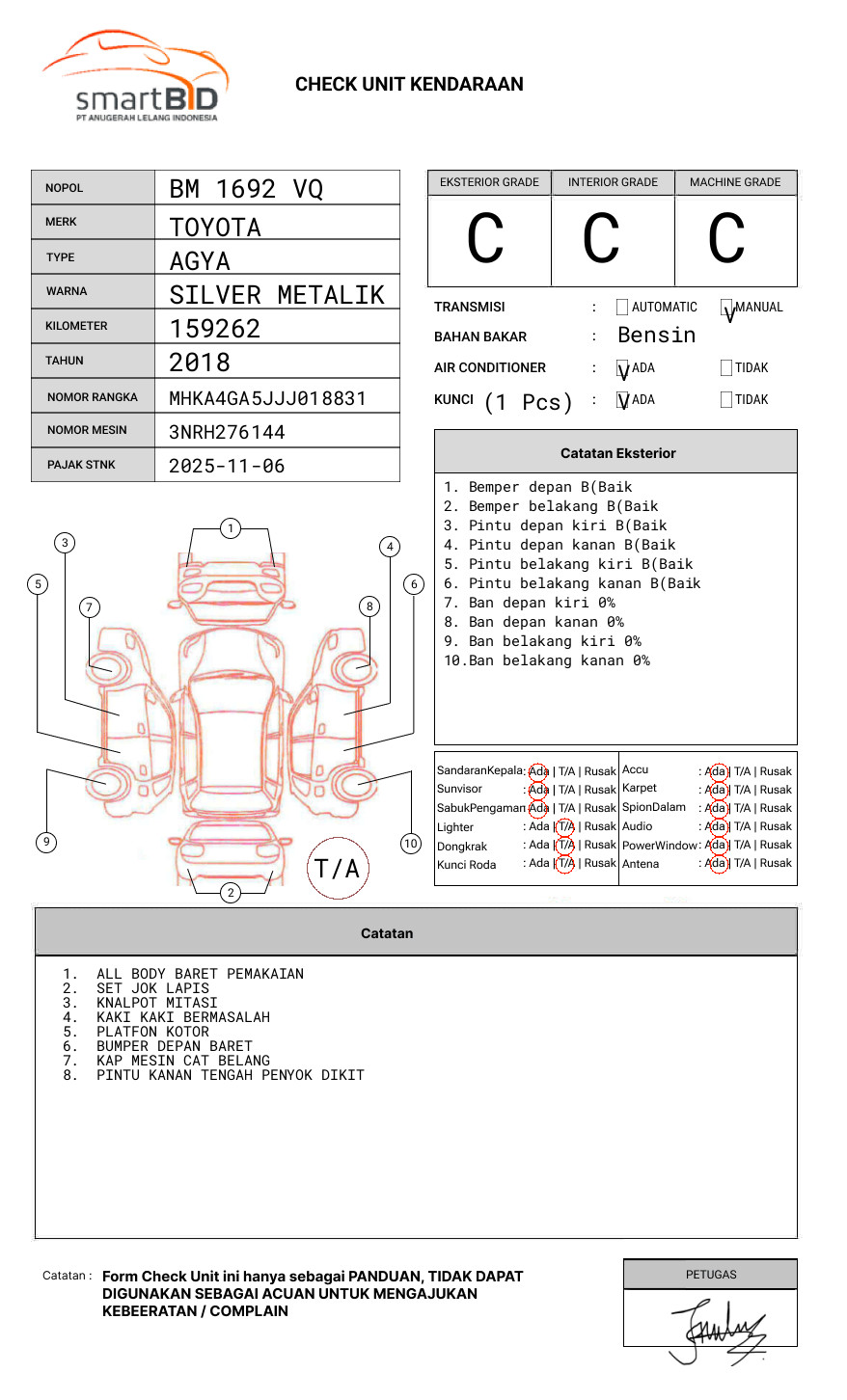 SEBELUM MELAKUKAN PENAWARAN HARAP CEK KONDISI UNIT SERTA DOKUMEN TERLEBIH DAHULU//UNIT DIKENAKAN BIAYA PPN 1,1% DARI HARGA TERBENTUK// JANBOY :+62 821-6954-4266 / JONNY : +62 813-7163-4690//SAMUEL : 0815 3681 7849