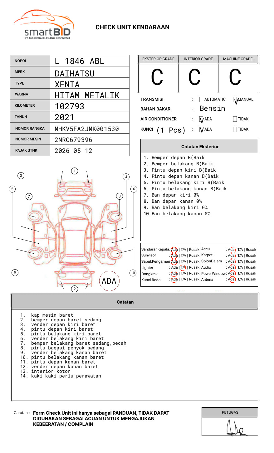 SEBELUM MELAKUKAN PENAWARAN UNIT PESERTA LELANG WAJIB MELAKUKAN PENGECEKAN UNIT DAN DOKUMEN TERLEBIH DAHULU //PIC AWAL +62 895-3231-57272 / ANDRI 085136886212