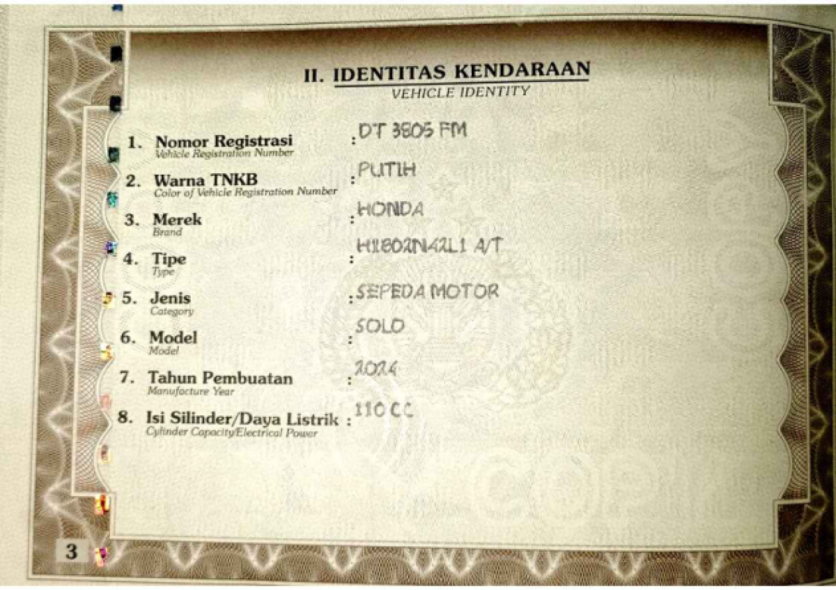 | No. Polisi | : | DT 3805 FM |