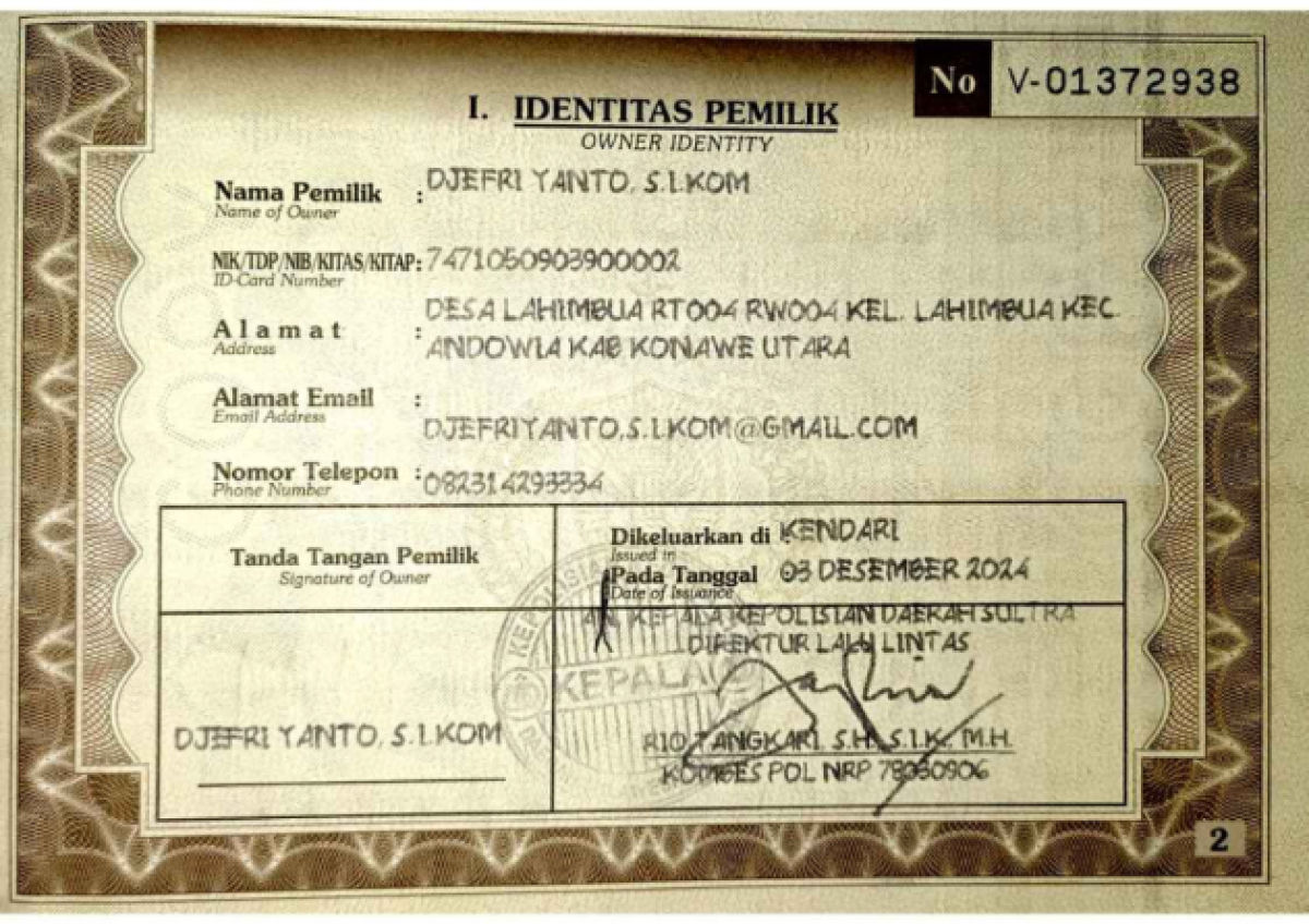 | STNK | : | Tidak Ada |