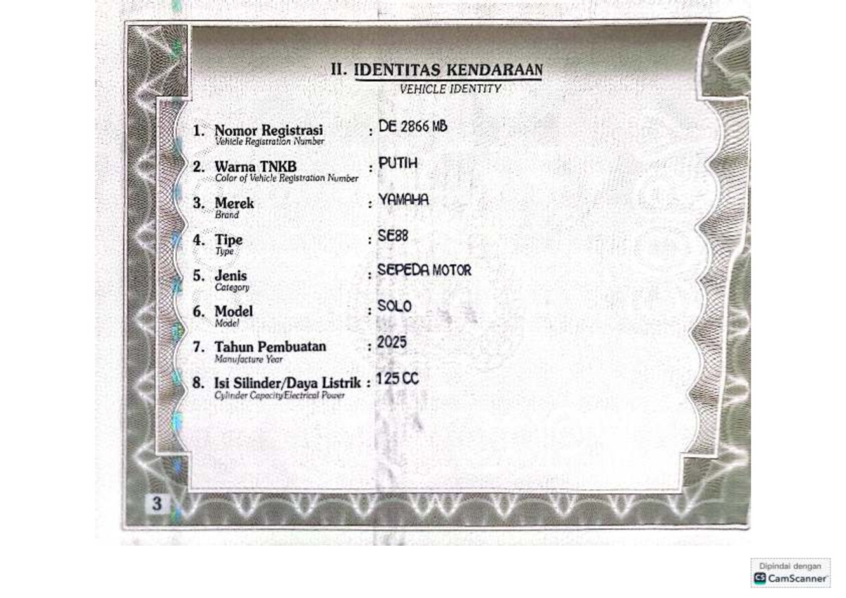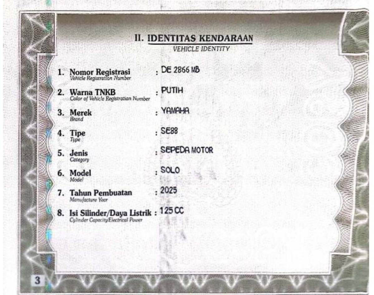 | No. Polisi | : | DE 2866 MB |