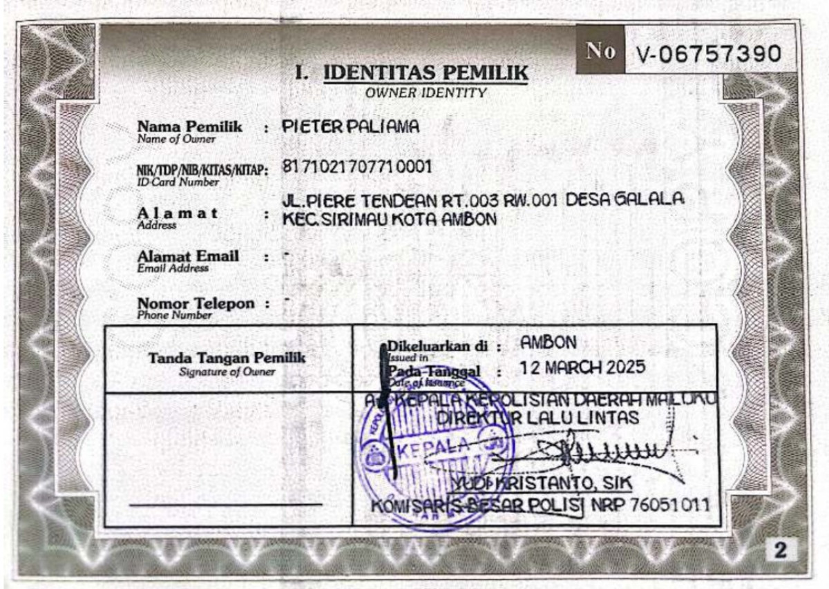 | STNK | : | Tidak Ada |