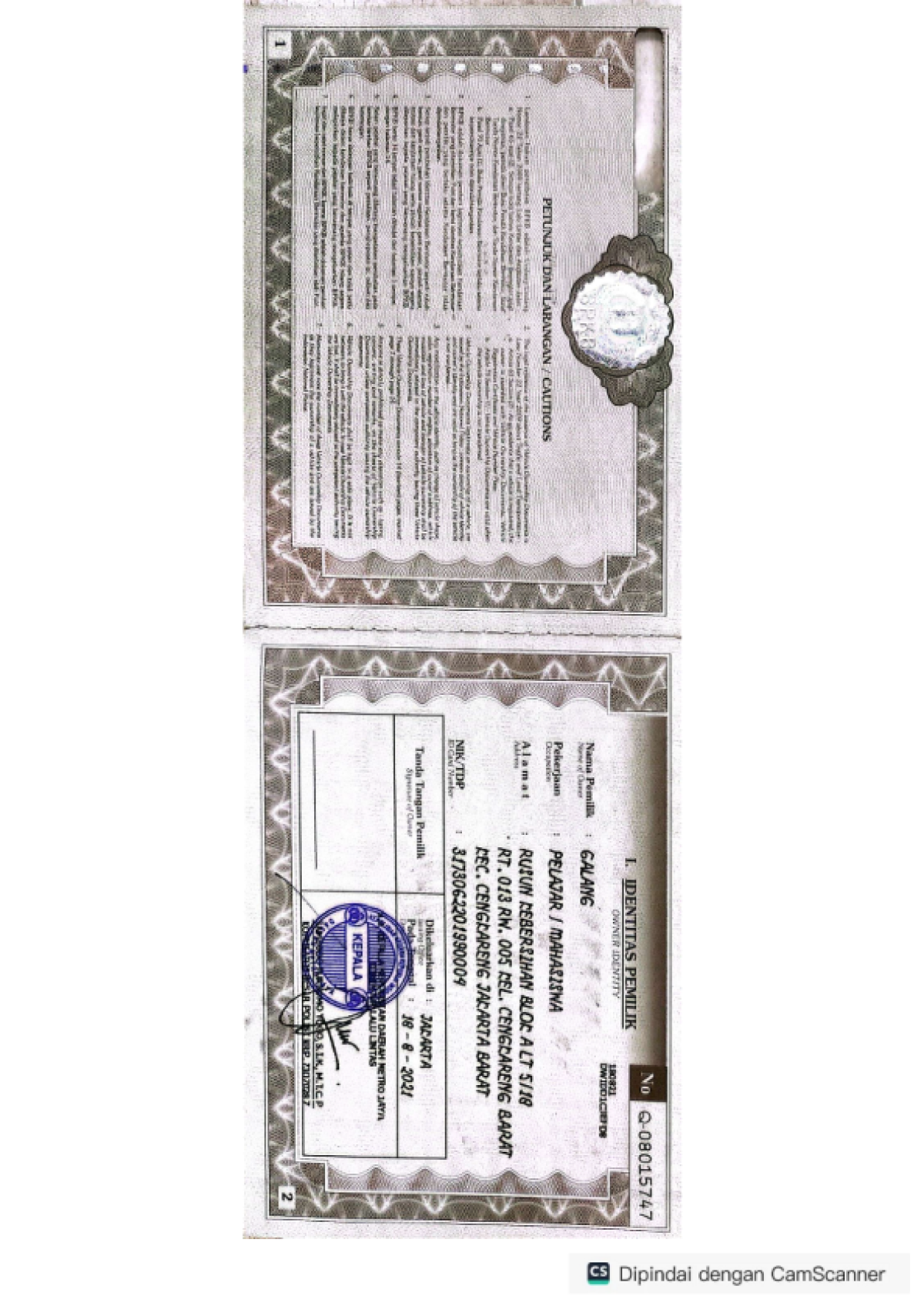 | STNK | : | Ada |