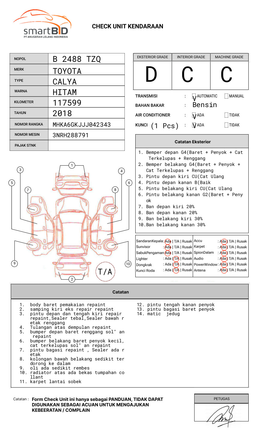 SEBELUM MELAKUKAN PENAWARAN UNIT PESERTA LELANG WAJIB MELAKUKAN PENGECEKAN UNIT DAN DOKUMEN TERLEBIH DAHULU // PIC MAS UD : 081213061687// UNIT DIKENAKAN BIAYA PPN 1.1% DARI HARGA TERBENTUK //