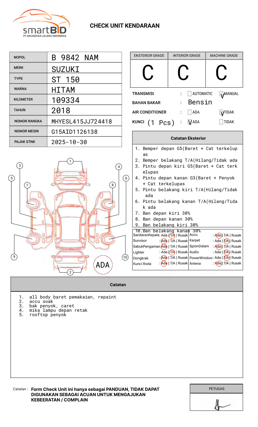 SEBELUM MELAKUKAN PENAWARAN HARAP CEK KONDISI UNIT SERTA DOKUMEN TERLEBIH DAHULU// UNIT DIKENAKAN BIAYA PPN 1,1% DARI HARGA TERBENTUK// PIC WAHYU : 082124062748