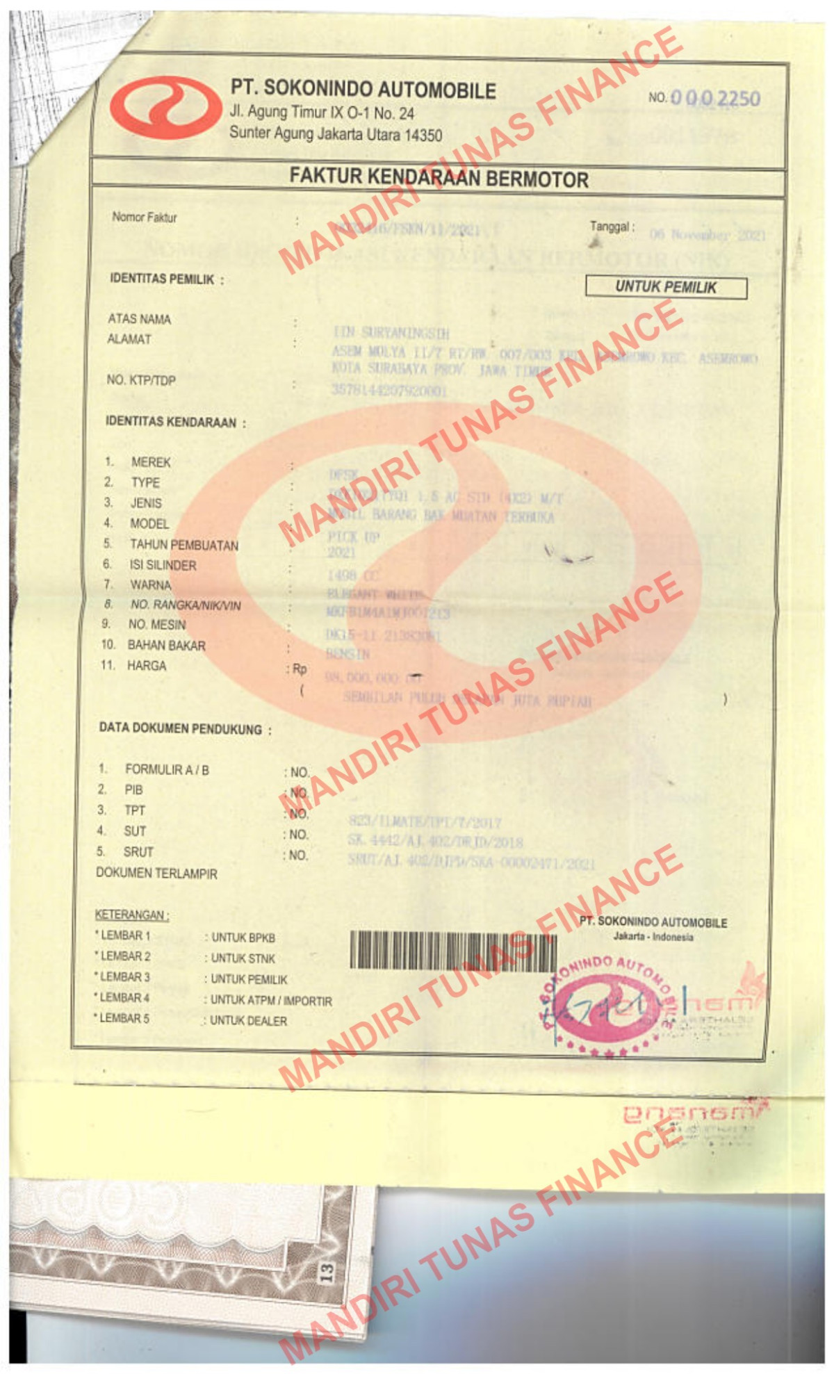 SEBELUM MELAKUKAN PENAWARAN UNIT PESERTA LELANG WAJIB MELAKUKAN PENGECEKAN UNIT DAN DOKUMEN TERLEBIH DAHULU // PIC AWAL +62 895-3231-57272 / ANDRI 085136886212  // UNIT DIKENAKAN BIAYA PPN 1.1% DARI HARGA TERBENTUK // ADA BIAYA ROYA FIDUSIA 100.000