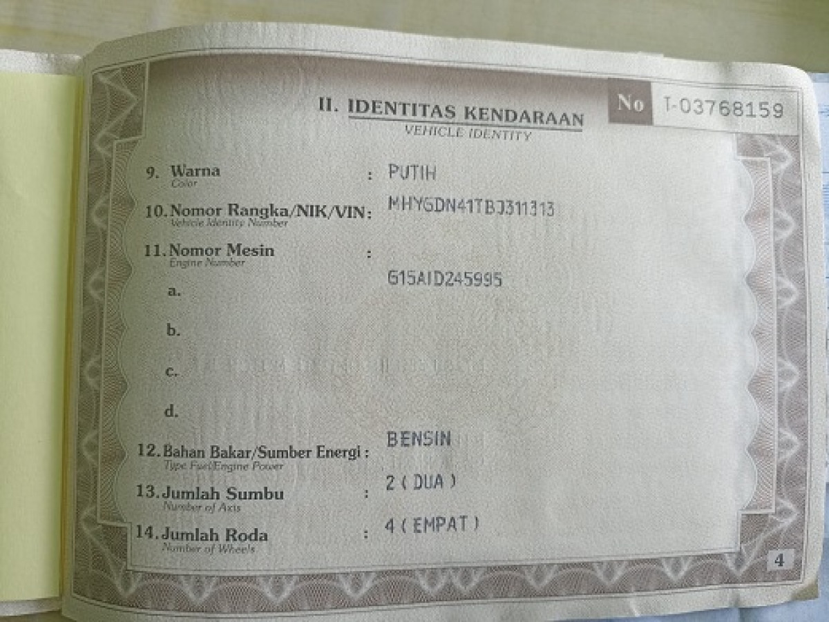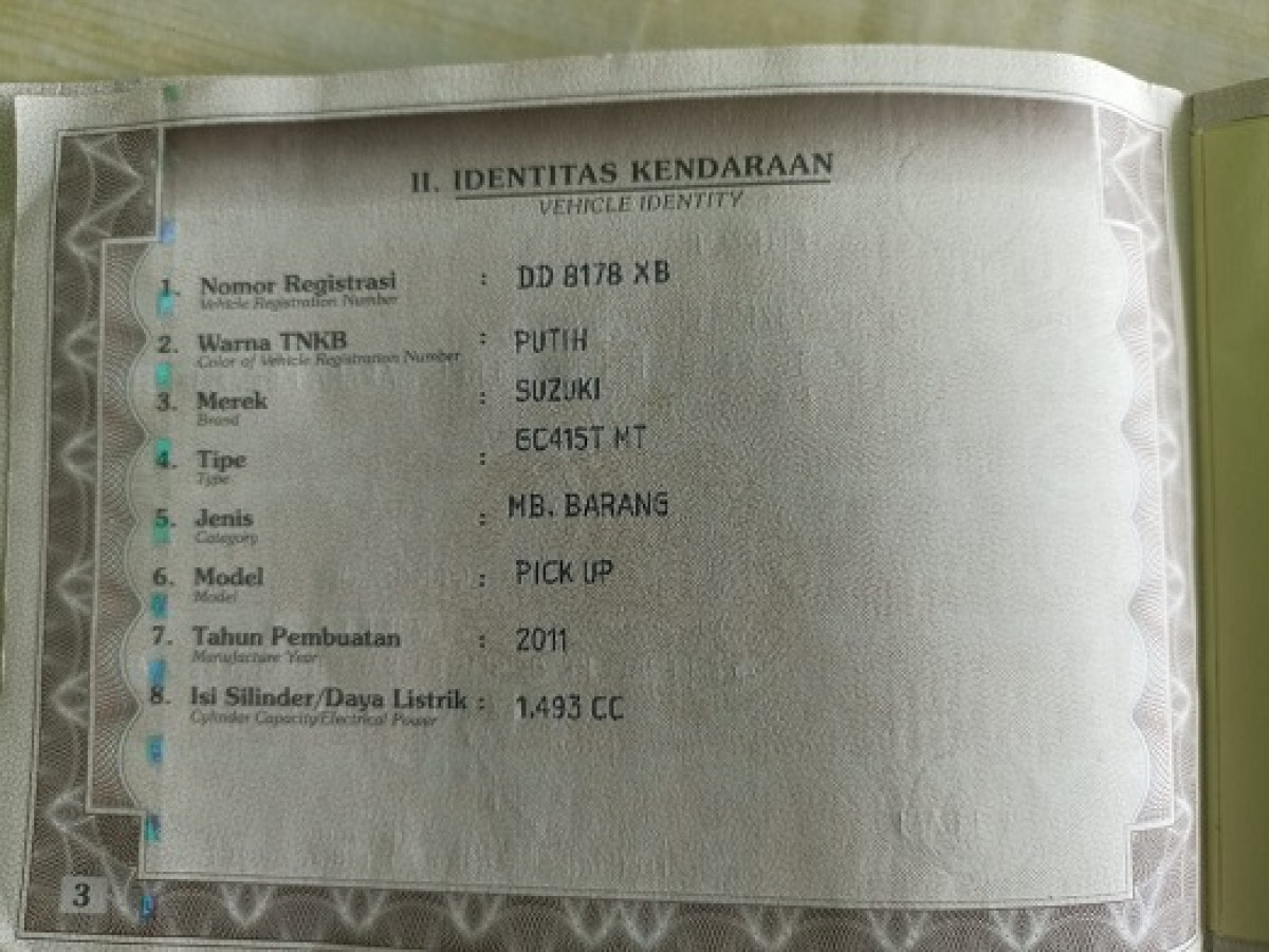 UNIT TIDAK DILAKUKAN PENGECEKAN OLEH TIM SMARTBID// SEBELUM MELAKUKAN PENAWARAN HARAP CEK KONDISI UNIT DAN DOKUMEN TERLEBIH DAHULU// WAJIB MENGHUBUNGI PIC DAN DATANG KE LOKASI UNTUK PENGECEKAN UNIT// UNIT DILELANG APA ADANYA PERMASALAHAN YANG TIMBUL DILUAR TANGGUNG JAWAB SMARTBID// PENGAMBILAN UNIT SLIDE H+2 DARI PELUNASAN // JIKA INGIN MENGAMBIL UNIT HARAP UNTUK KONFIRMASI DAHULU KE SMARTBID // JIKA YANG MENGAMBIL BIDDER HARAP MEMBAWA KTP ASLI // JIKA PENGAMBILAN DIWAKILKAN WAJIB MEMBAWA SURAT KUASA ASLI // UNIT DIKENAKAN BIAYA PPN 1,1% DARI HARGA TERBENTUK// LOKASI UNIT HUBUNGI Bpk. Reza 0813-4377-9338 / CS PUSAT 081188089292// Mesin berfungsi, Body tergores, Setir imitasi, Cover plafon imitasi, Mesin rembes oli, Lantai bak berkarat, Lantai kabin depan berkarat//Spring (FR) | Gasket Cover Head | Gasket Cylinder Head | Tire (spare) | Spring (RR) | Tire (Rr-R) | Air Filter | Tire (Fr-L) | Tire (Fr-R) | Tire (Rr-L) | Clutch Plate | Fan Belt | Engine Services (Light) | Radiator Fan | Battery | Aircon Evaporator | Brake Pad (Rr) | Spark Plug(s) | Injector | Brake Master | Brake Pad (Fr)/Ceiling Lamp (Fr) | Bolt Crane and Jack | Carpet | Ceiling Trim | Interior Saloon | Tool Kit | Steering-wheel | sunvisor (L)/Antenna | Cargo Panel Repair (Rr) | Rim cover (Fr-R) | Rim cover (Rr-L) | Windshield Wiper | Cargo Panel Repair (Deck) | Rim cover (Rr-R) | Fender Repair (Fr-R) | Rim cover (Fr-L) | Headlight (Fr-L) | Headlight (Fr-R) | Turn Lamp (Fr-R) | Mirror (L) | Turn Lamp (Fr-L) | Taillight (Rr-L) | Side Skirt Repair (R) | Mirror (R ) | Side Skirt Repair (L) | Taillight (Rr-R) | Fender Repair (Fr-L) | Bumper Repair (Fr) | Bumper Repair (Rr) | Turn Lamp (Rr-R) | Turn Lamp (Rr-L) | Roof Repair//