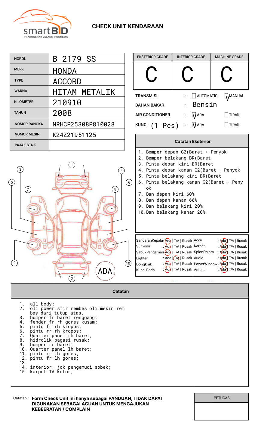 SEBELUM MELAKUKAN PENAWARAN UNIT PESERTA LELANG WAJIB MELAKUKAN PENGECEKAN UNIT DAN DOKUMEN TERLEBIH DAHULU // PIC DENNY : 0852-9442-5362 // UNIT DIKENAKAN BIAYA PPN 1.1% DARI HARGA TERBENTUK //