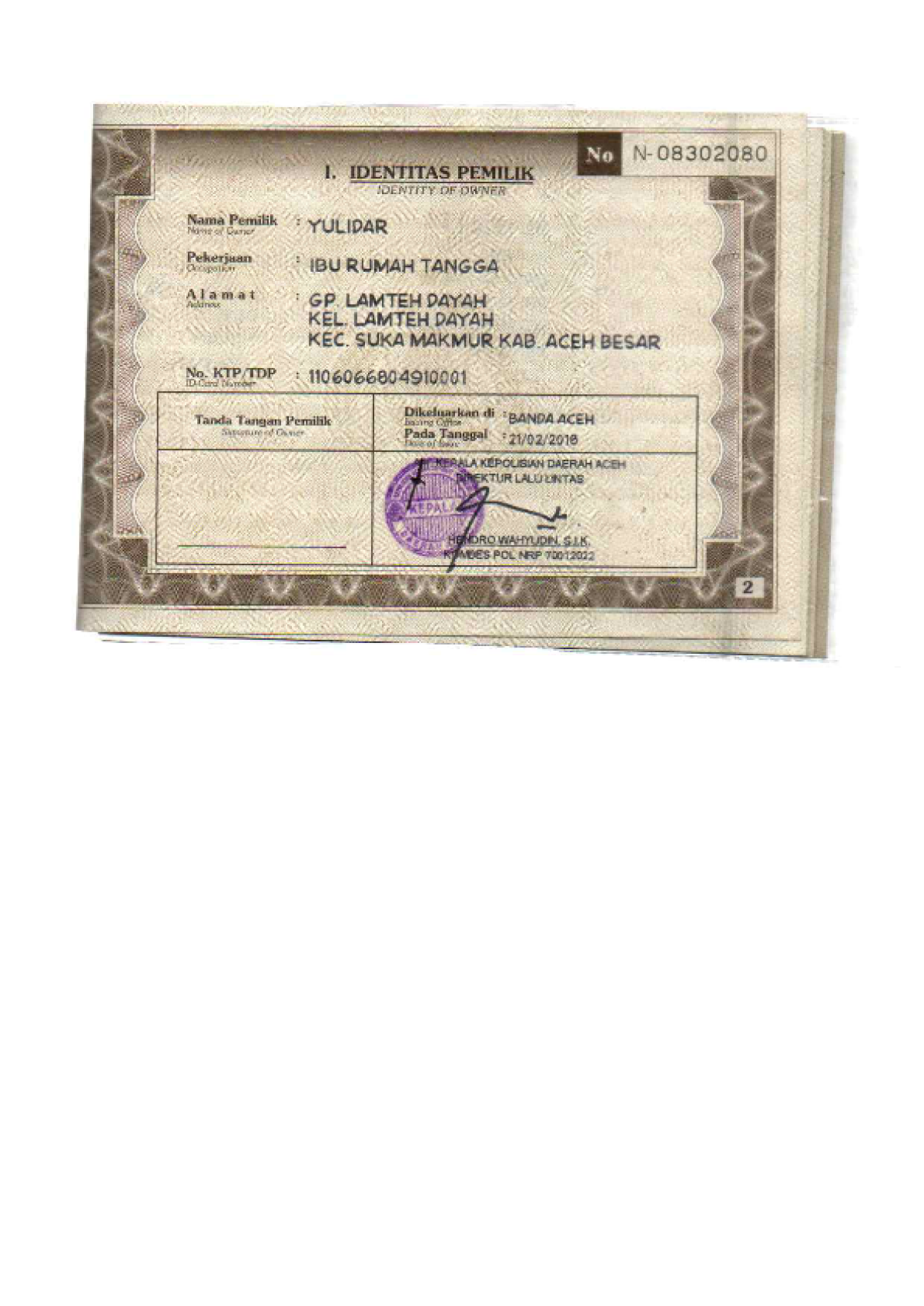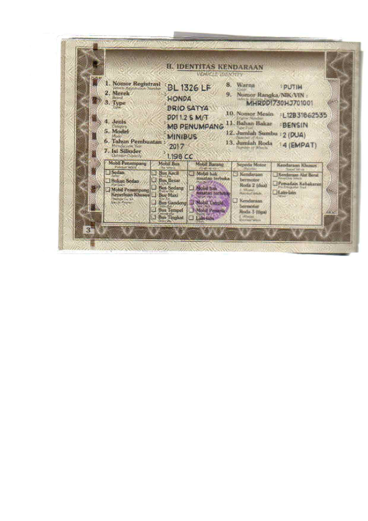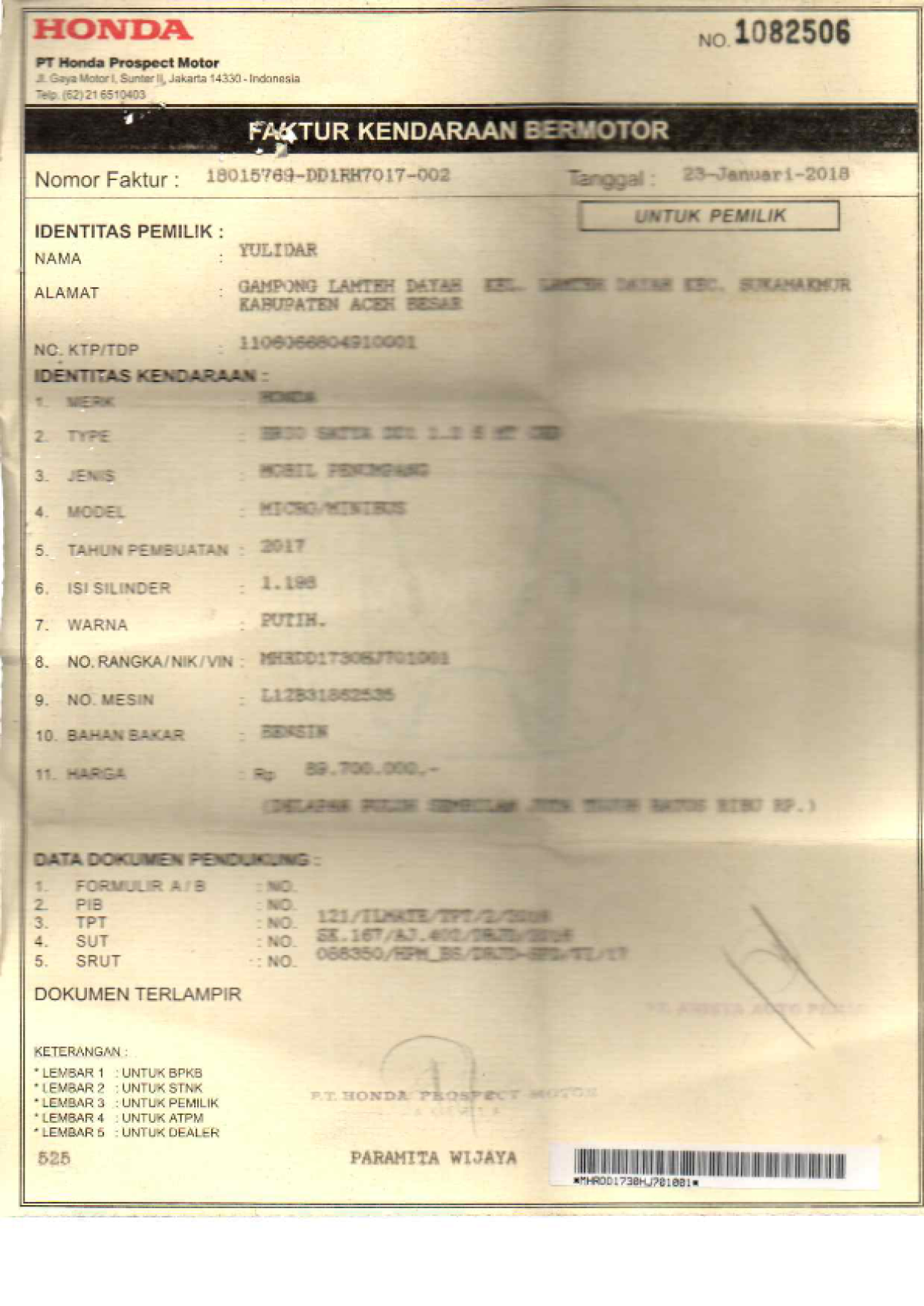 | No. Rangka | : | MHRDD1730HJ701001 |