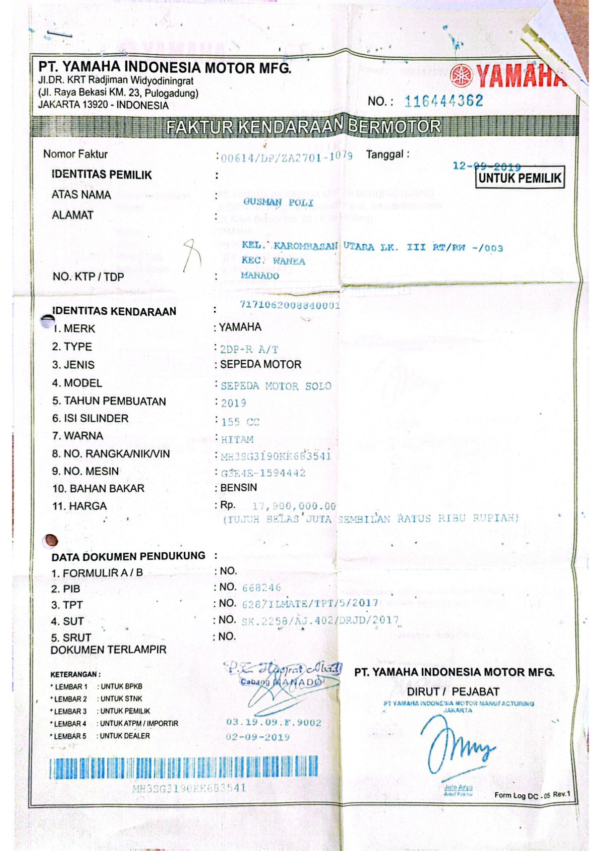 SEBELUM MELAKUKAN PENAWARAN UNIT PESERTA LELANG WAJIB MELAKUKAN PENGECEKAN UNIT DAN DOKUMEN TERLEBIH DAHULU // PIC ERWIN +62 852-5532-9221 / SARDIMAN 089523807733 // UNIT DIKENAKAN BIAYA PPN 1.1% DARI HARGA TERBENTUK //