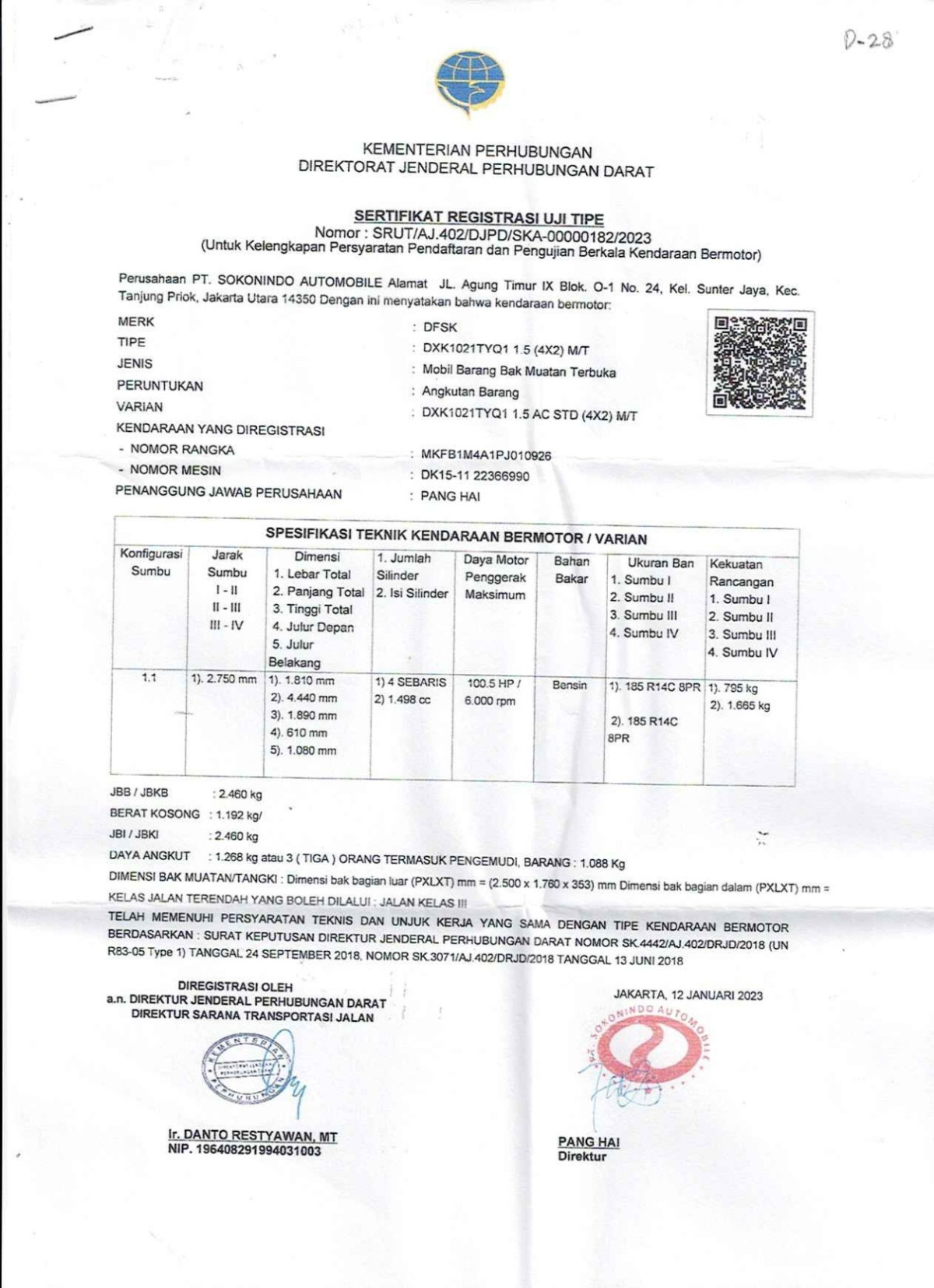 | No. Rangka | : | MKFB1M4A1PJ010926 |