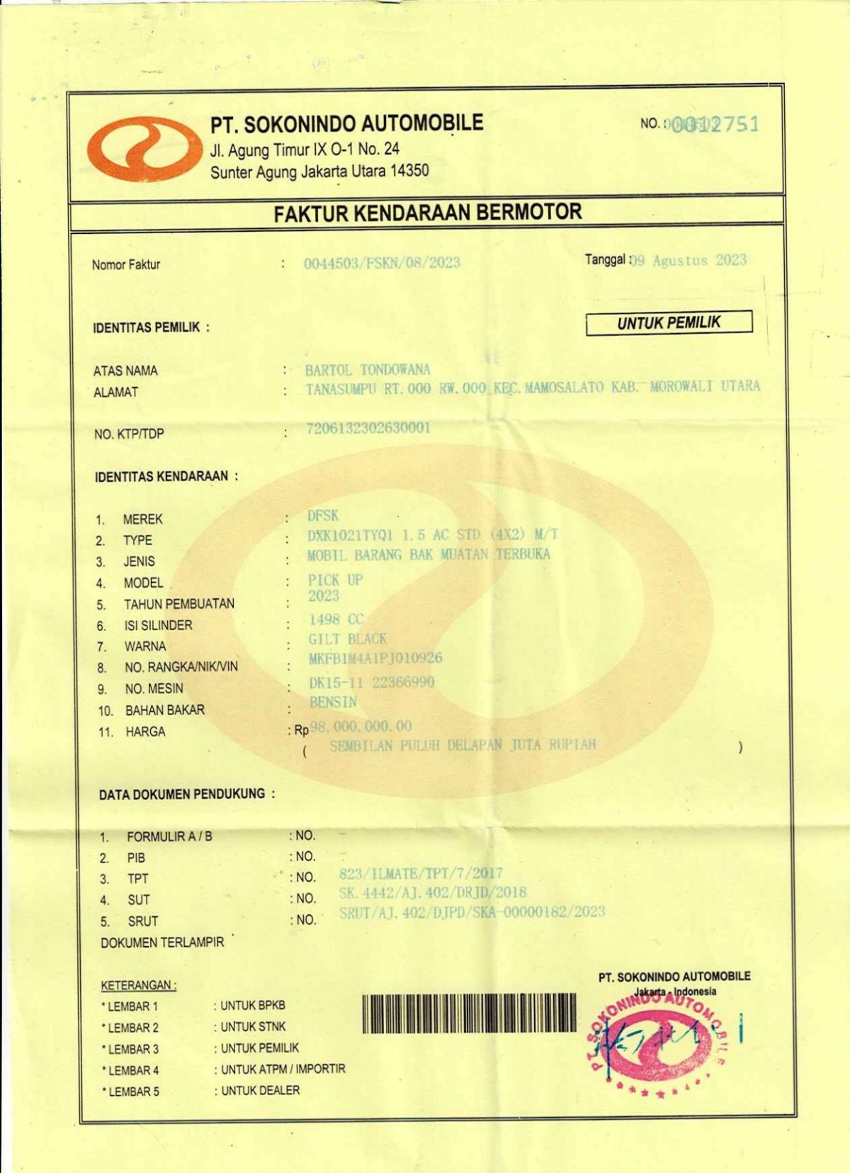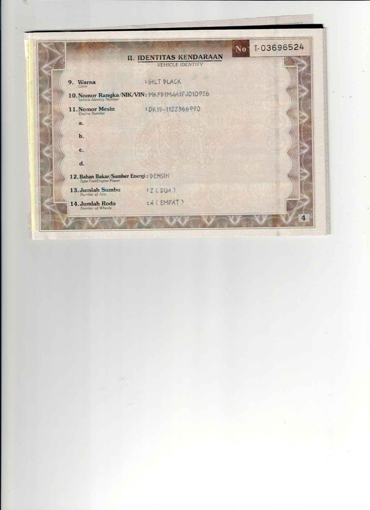 NO RANGKA KARAT TIDAK TERBACA // FOTO NOSIN T/A // UNIT TIDAK DILAKUKAN PENGECEKAN OLEH TIM SMARTBID// SEBELUM MELAKUKAN PENAWARAN HARAP CEK KONDISI UNIT DAN DOKUMEN TERLEBIH DAHULU// WAJIB MENGHUBUNGI PIC DAN DATANG KE LOKASI UNTUK PENGECEKAN UNIT// UNIT DILELANG APA ADANYA PERMASALAHAN YANG TIMBUL DILUAR TANGGUNG JAWAB SMARTBID// PENGAMBILAN UNIT SLIDE H+2 DARI PELUNASAN // JIKA INGIN MENGAMBIL UNIT HARAP UNTUK KONFIRMASI DAHULU KE SMARTBID // JIKA YANG MENGAMBIL BIDDER HARAP MEMBAWA KTP ASLI // JIKA PENGAMBILAN DIWAKILKAN WAJIB MEMBAWA SURAT KUASA ASLI // UNIT DIKENAKAN BIAYA PPN 1,1% DARI HARGA TERBENTUK// PEMENANG LELANG DIKENAKAN BIAYA ROYA FIDUSIA 100.000 // HUBUNGI PIC ZUlhak 085241371340