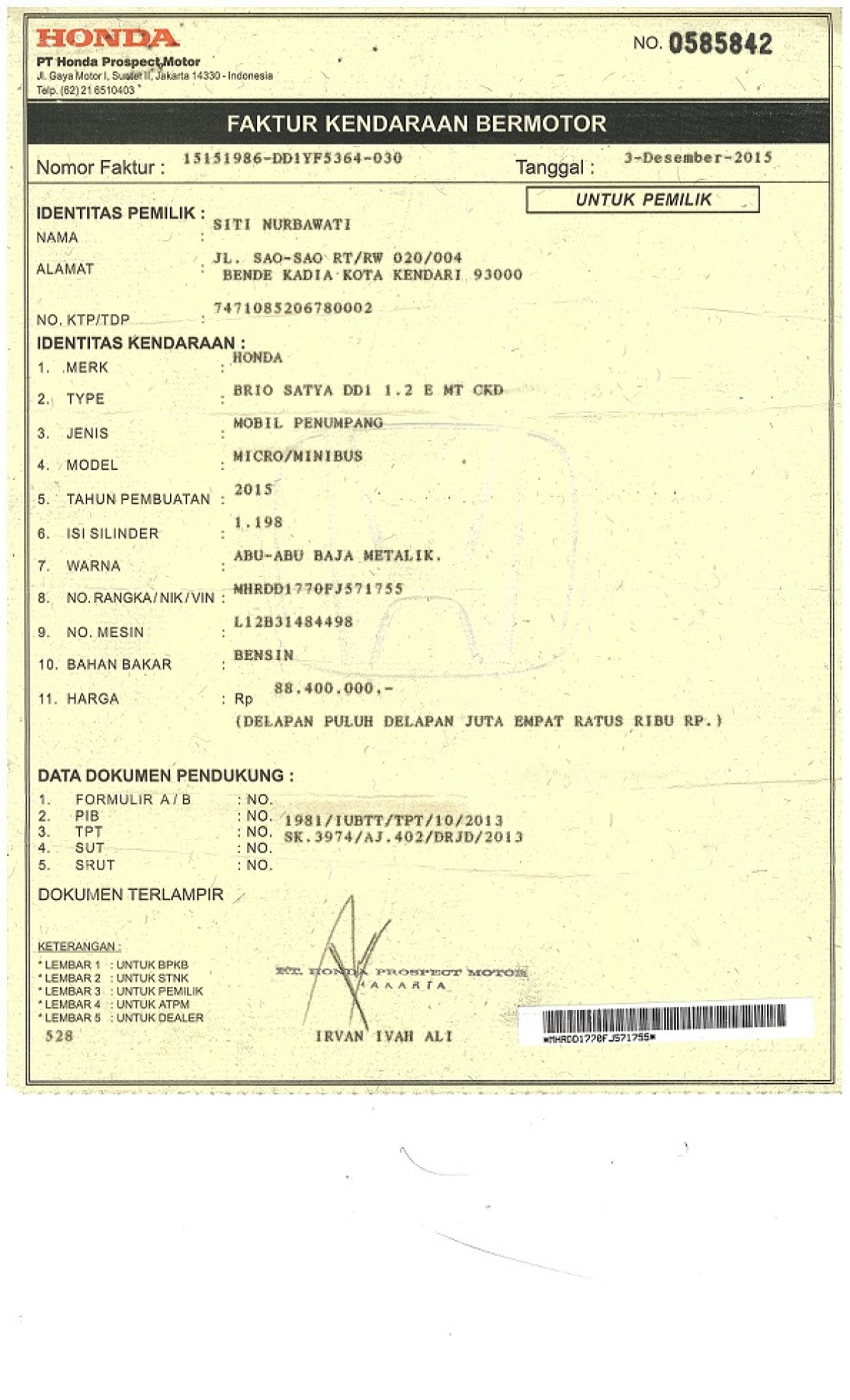 | No. Rangka | : | MHRDD1770FJ571755 |