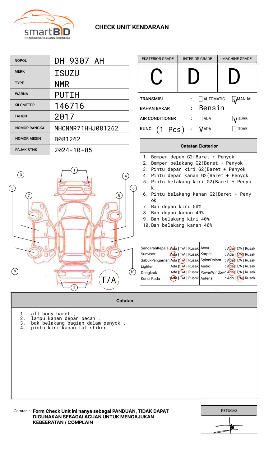SEBELUM MELAKUKAN PENAWARAN UNIT PESERTA LELANG WAJIB MELAKUKAN PENGECEKAN UNIT DAN DOKUMEN TERLEBIH DAHULU // PIC RACHMAT +6282145035002 // COPY FAKTUR & BPKB T/A //