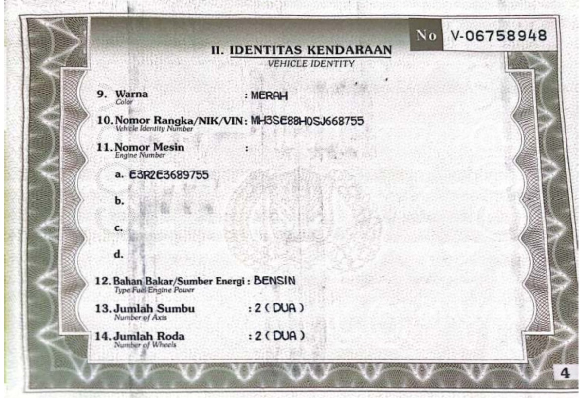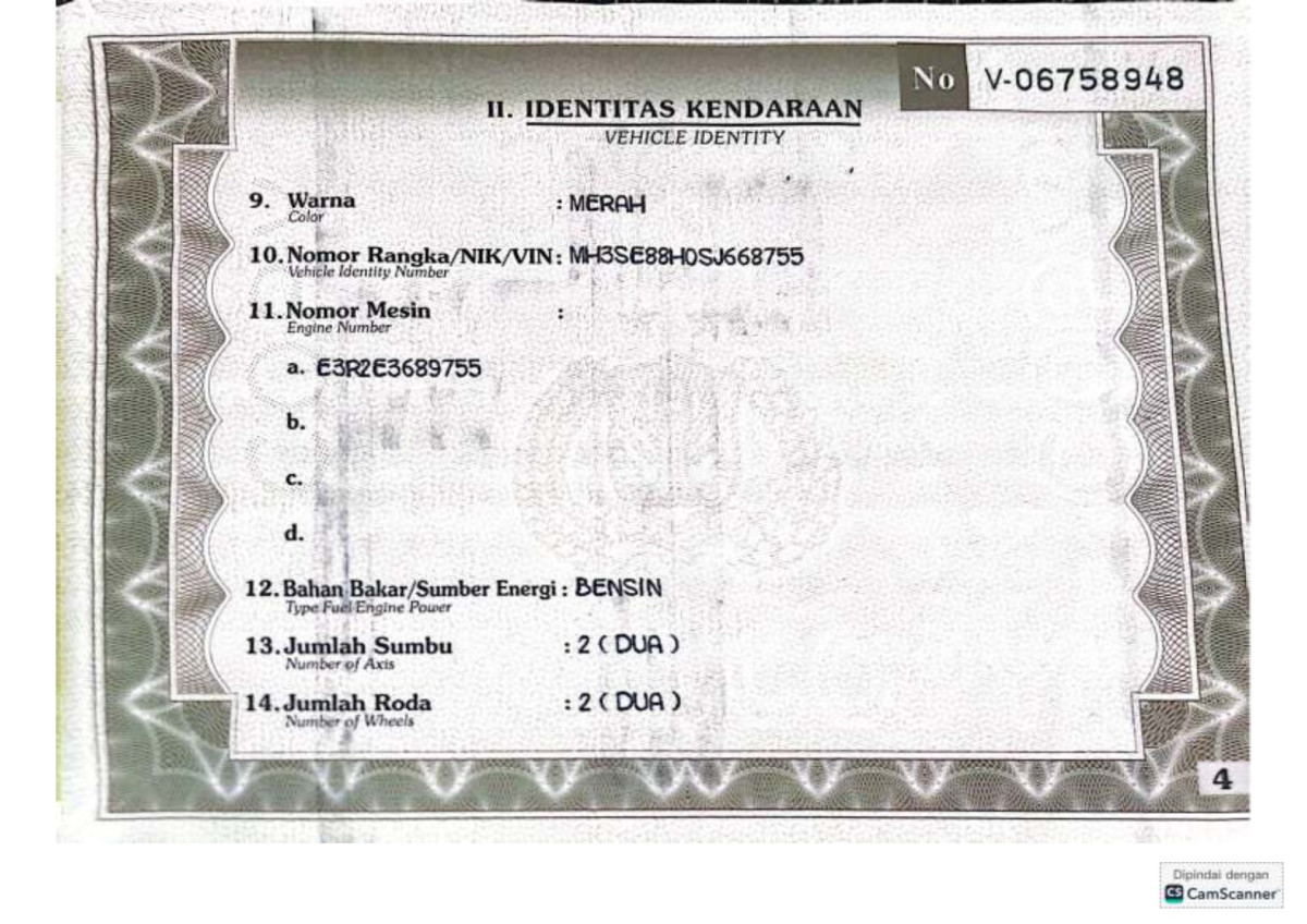 | No. Rangka | : | MH3SE88HOSJ668755 |