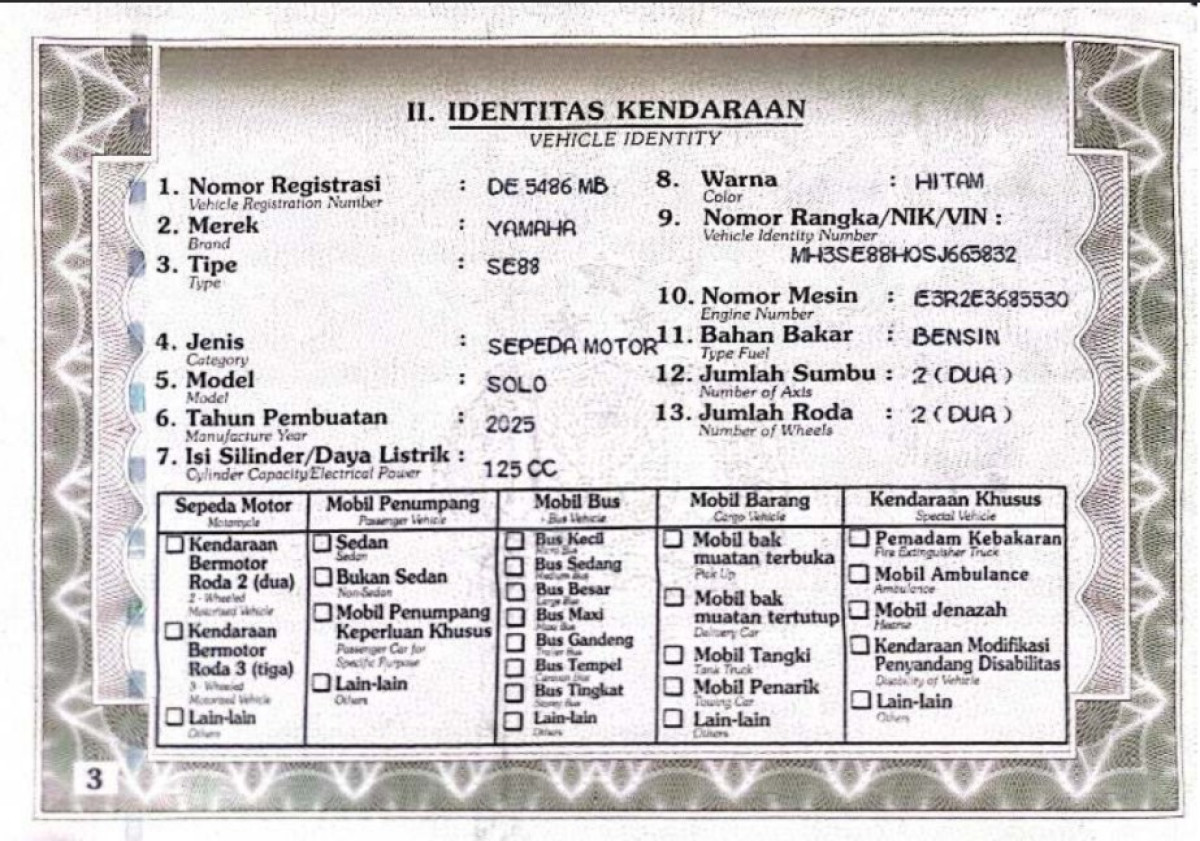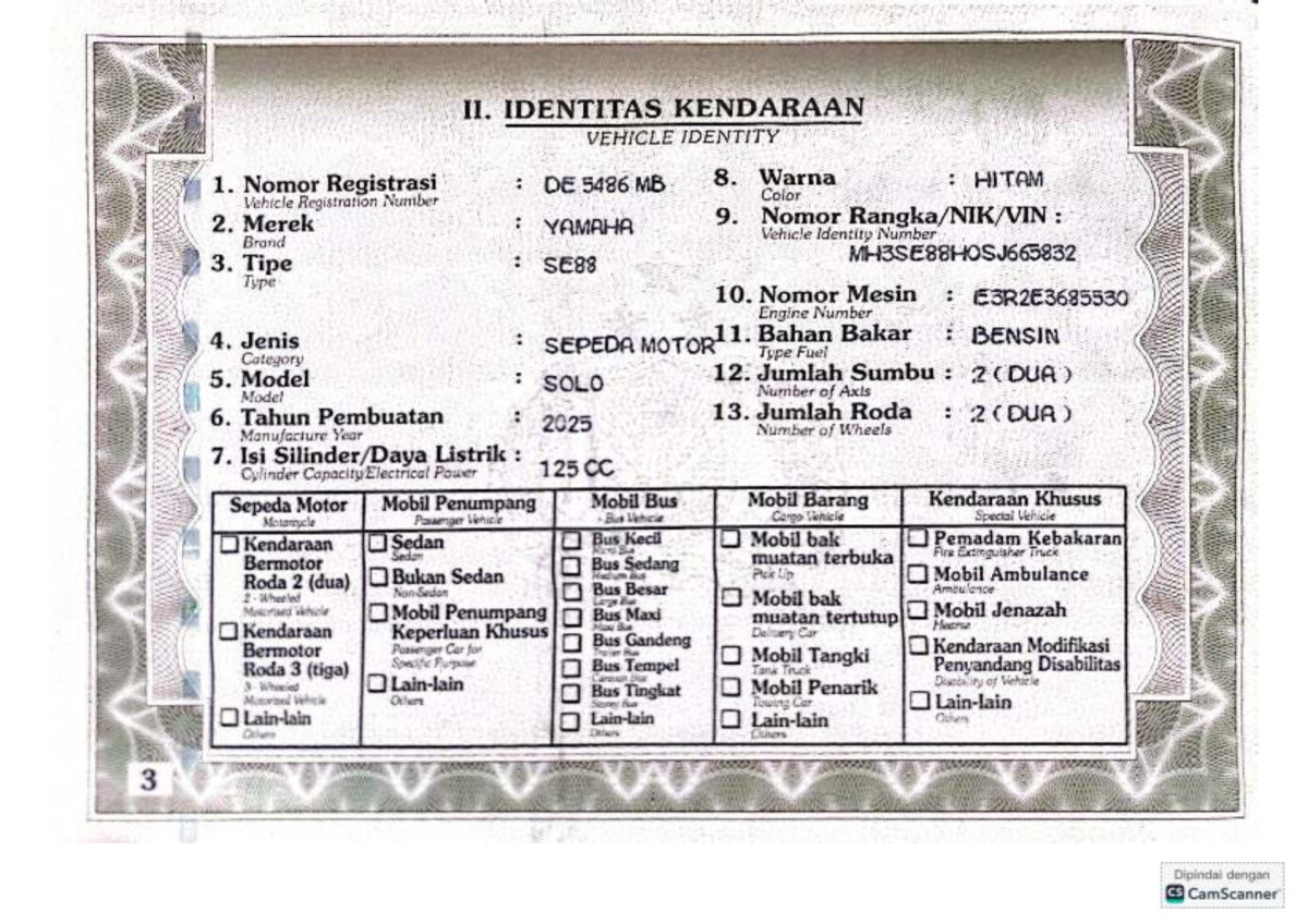 | No. Rangka | : | MH3SE88HOSJ665832 |