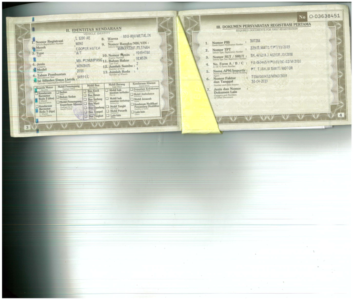 | No. Rangka | : | WMWXR3207JTL37684 |
