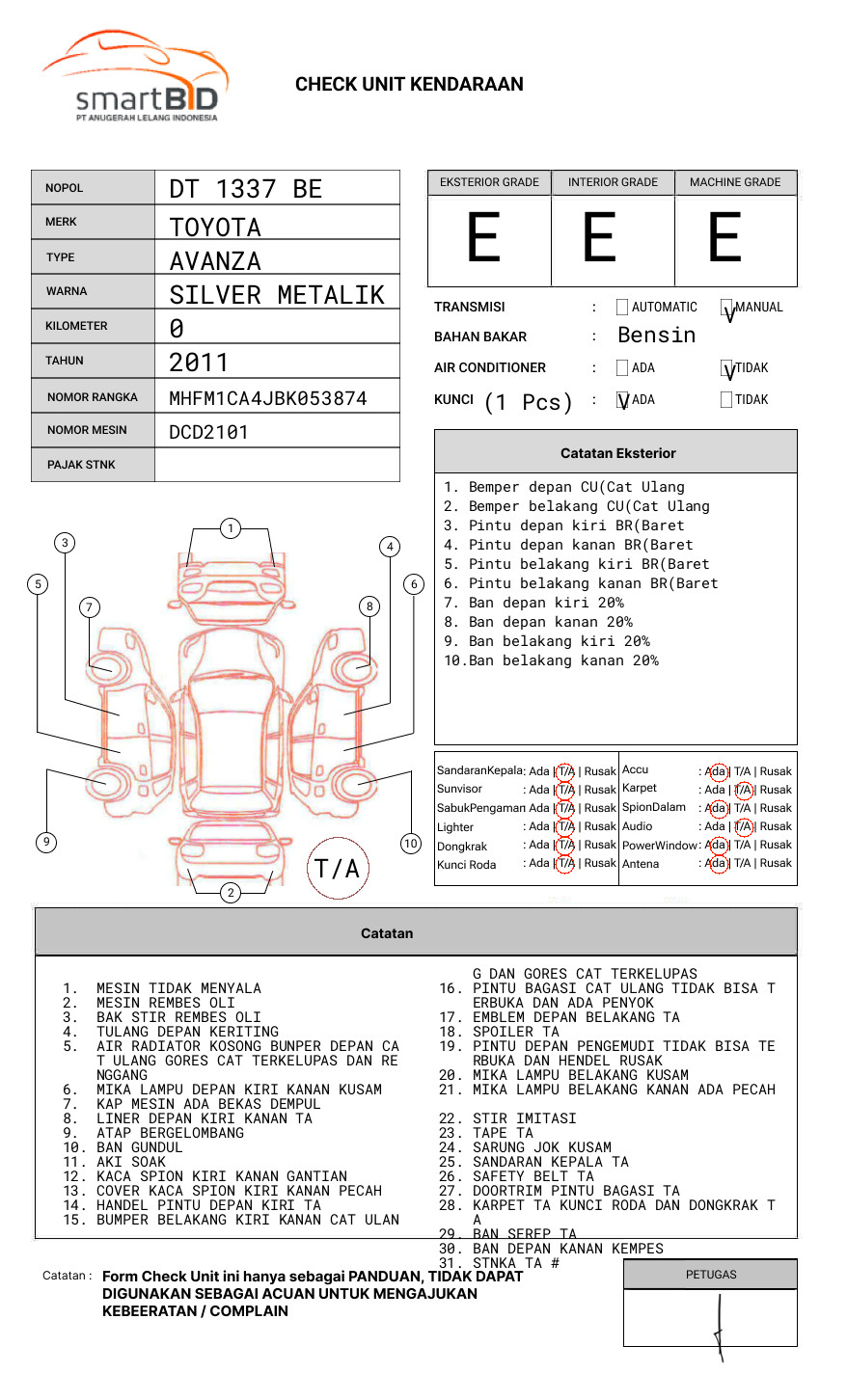 SEBELUM MELAKUKAN PENAWARAN UNIT PESERTA LELANG WAJIB MELAKUKAN PENGECEKAN UNIT DAN DOKUMEN TERLEBIH DAHULU // PIC RUDAL 0821 9140 0425 / MUHAMMAD DARWIS 082348587430 // UNIT DIKENAKAN BIAYA PPN 1.1% DARI HARGA TERBENTUK //