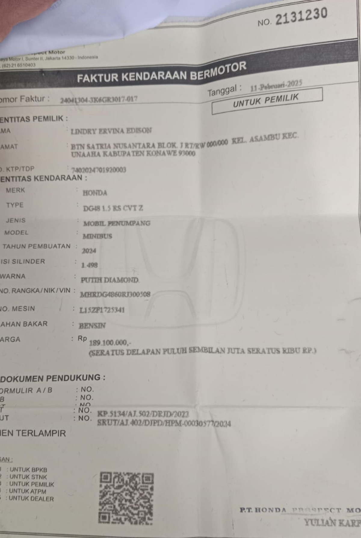 FOTO NOSIN T/A // UNIT TIDAK DILAKUKAN PENGECEKAN OLEH TIM SMARTBID// SEBELUM MELAKUKAN PENAWARAN HARAP CEK KONDISI UNIT DAN DOKUMEN TERLEBIH DAHULU// WAJIB MENGHUBUNGI PIC DAN DATANG KE LOKASI UNTUK PENGECEKAN UNIT// UNIT DILELANG APA ADANYA PERMASALAHAN YANG TIMBUL DILUAR TANGGUNG JAWAB SMARTBID// PENGAMBILAN UNIT SLIDE H+2 DARI PELUNASAN // JIKA INGIN MENGAMBIL UNIT HARAP UNTUK KONFIRMASI DAHULU KE SMARTBID // JIKA YANG MENGAMBIL BIDDER HARAP MEMBAWA KTP ASLI // JIKA PENGAMBILAN DIWAKILKAN WAJIB MEMBAWA SURAT KUASA ASLI // UNIT DIKENAKAN BIAYA PPN 1,1% DARI HARGA TERBENTUK// PEMENANG LELANG DIKENAKAN BIAYA ROYA FIDUSIA 100.000 // HUBUNGI PIC OonH 081245587287