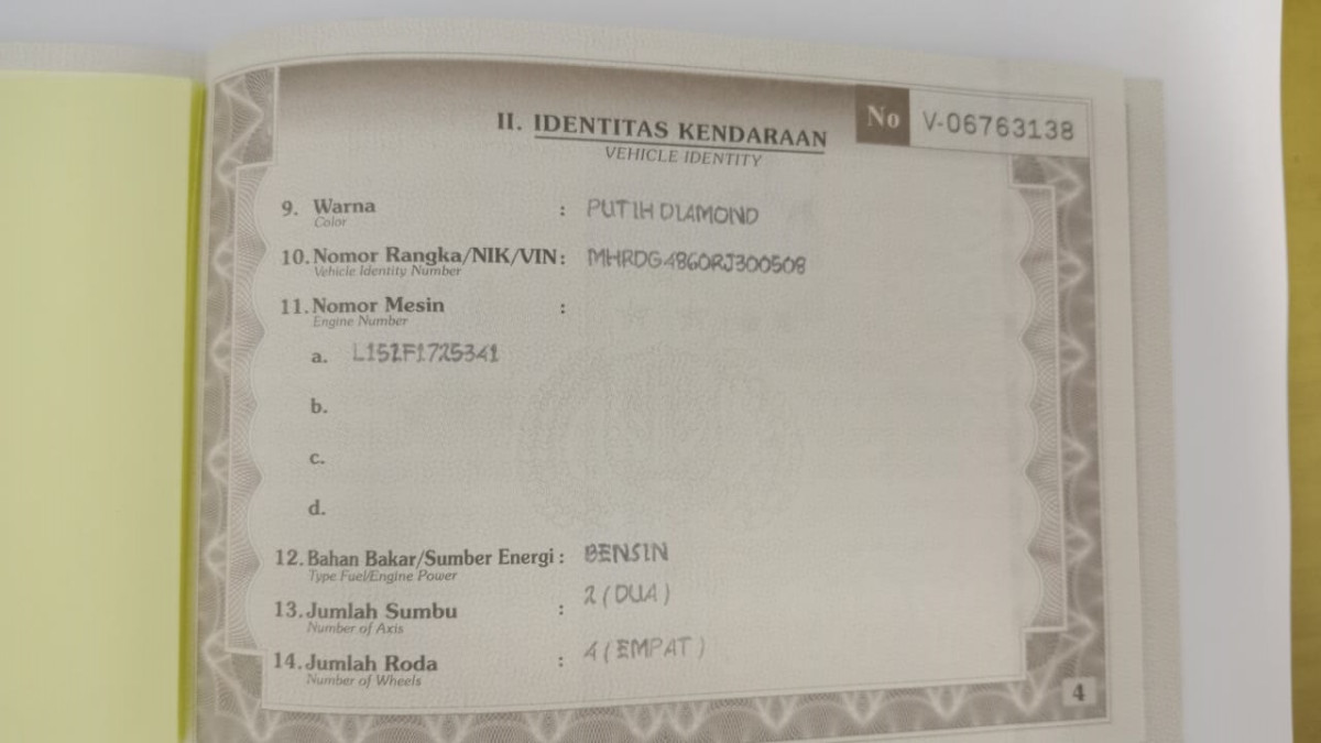 | No. Rangka | : | MHRDG4860RJ300508 |