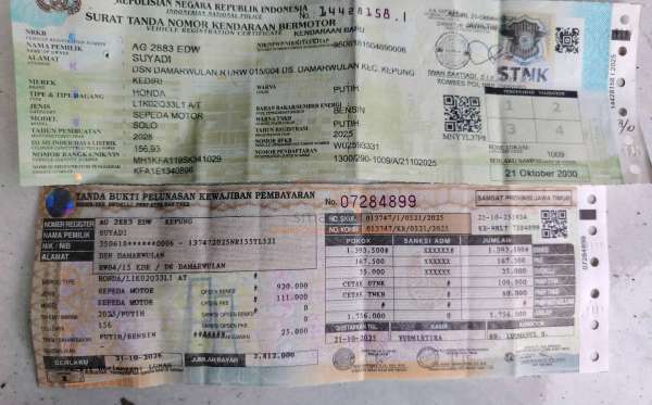 | No. Polisi | : | AG 2883 EDW |