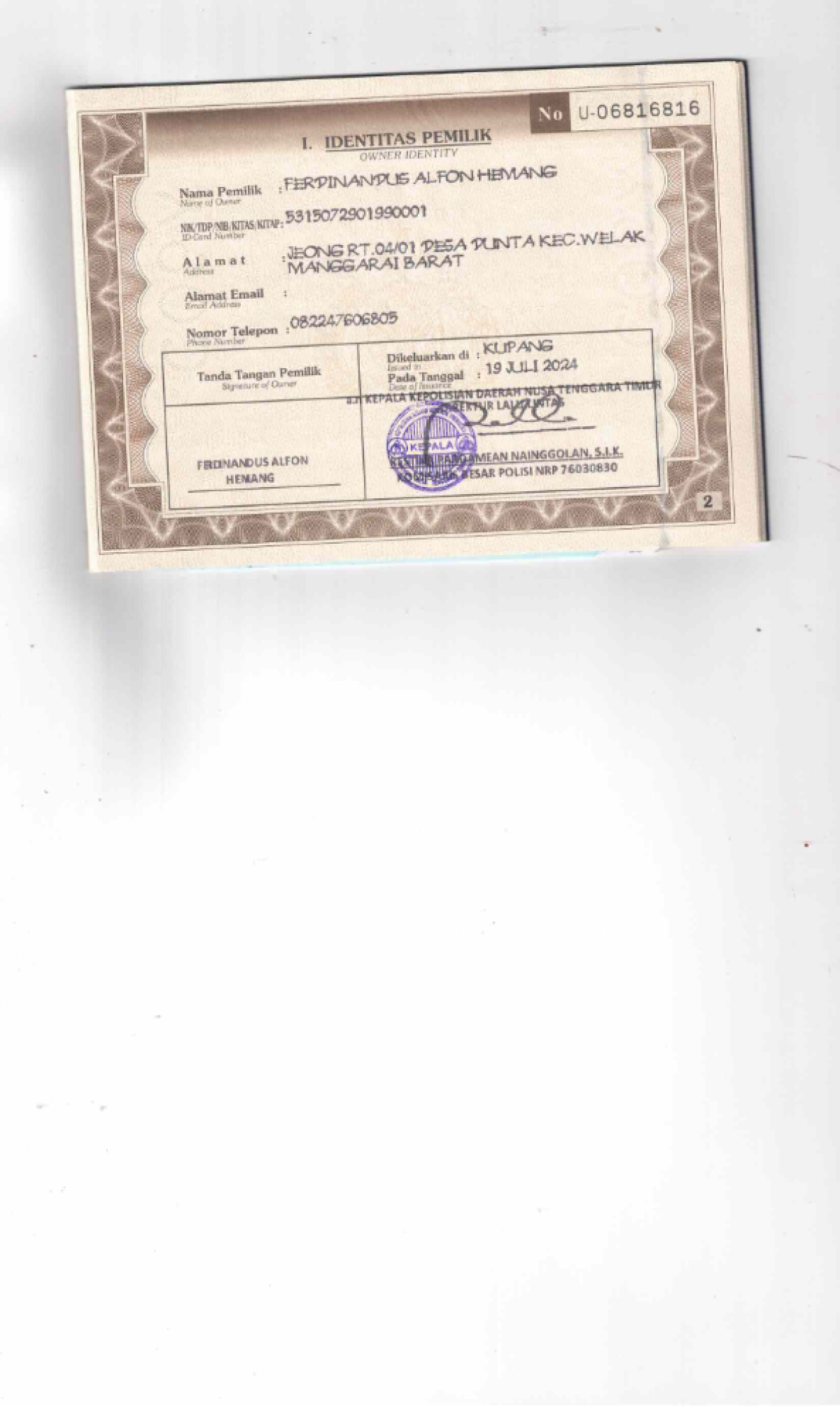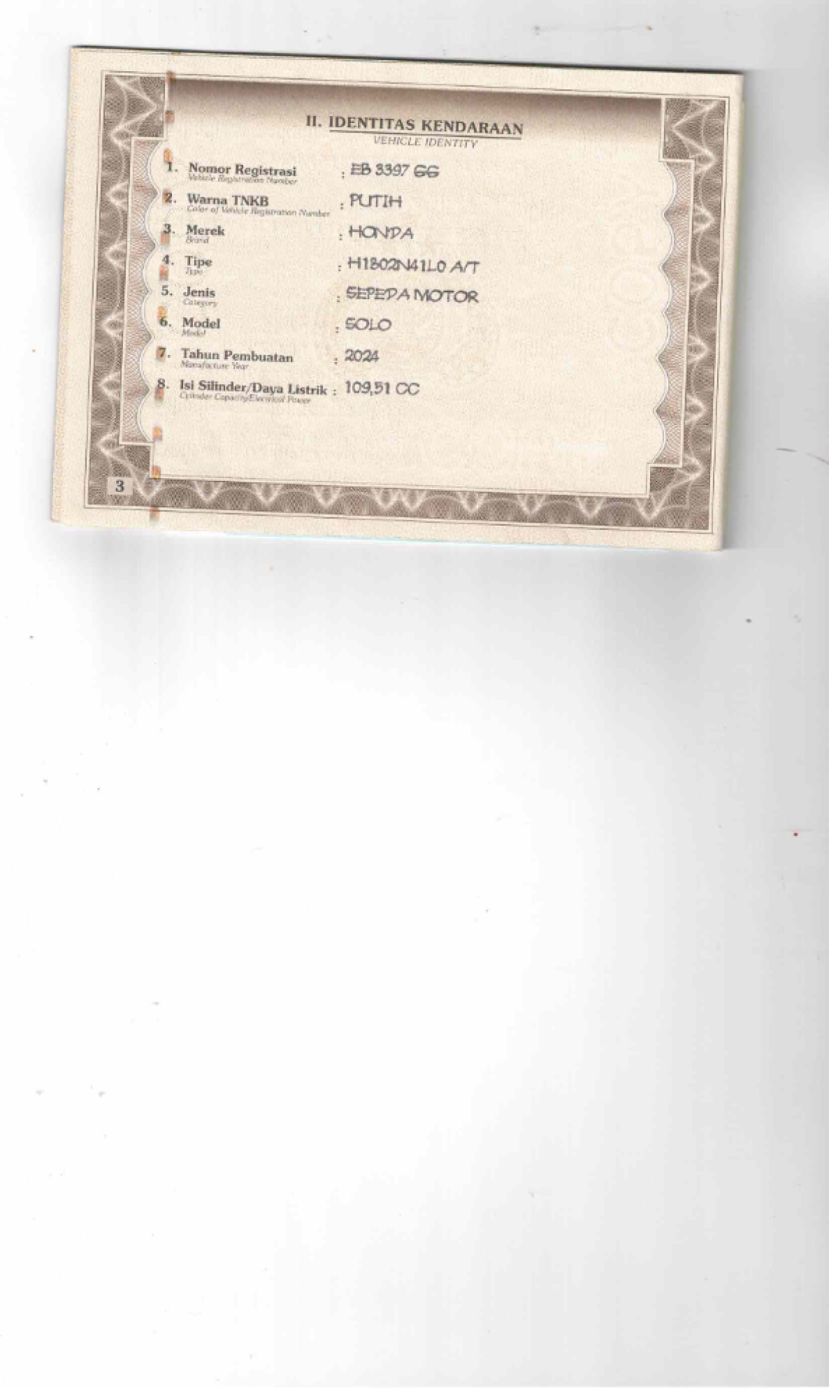 | No. Polisi | : | EB 3397 GG |