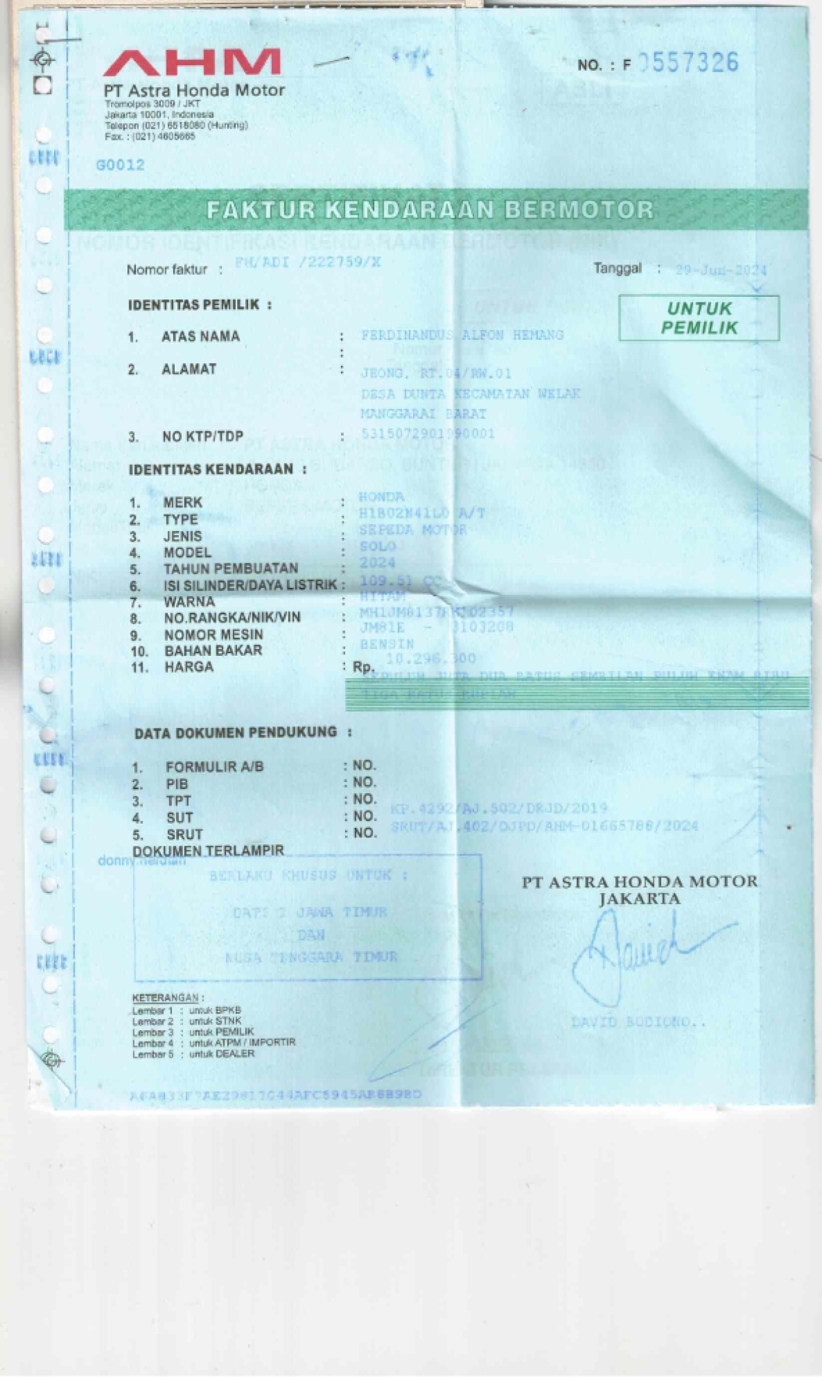 | KWT Blangko | : | Tidak Ada |