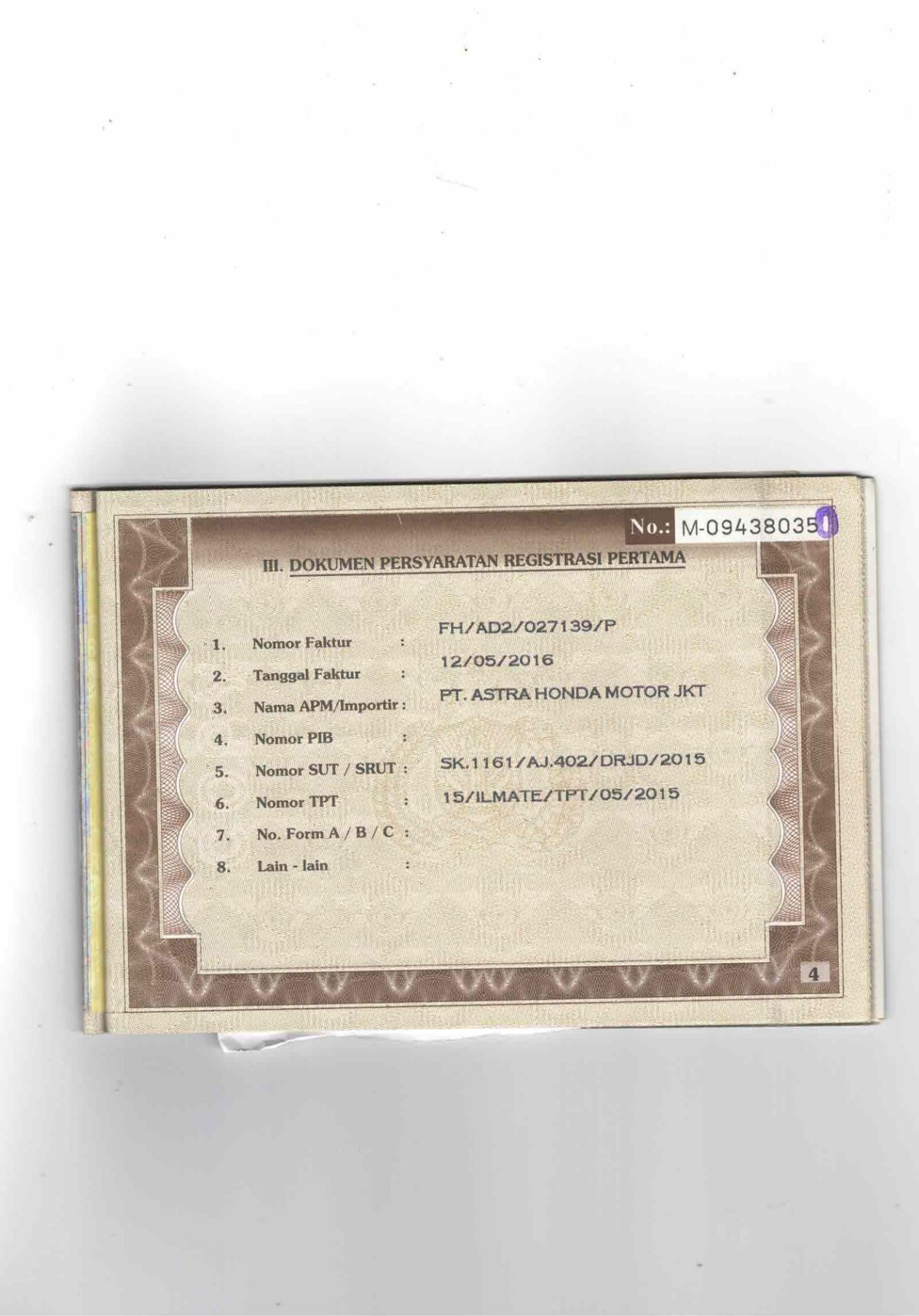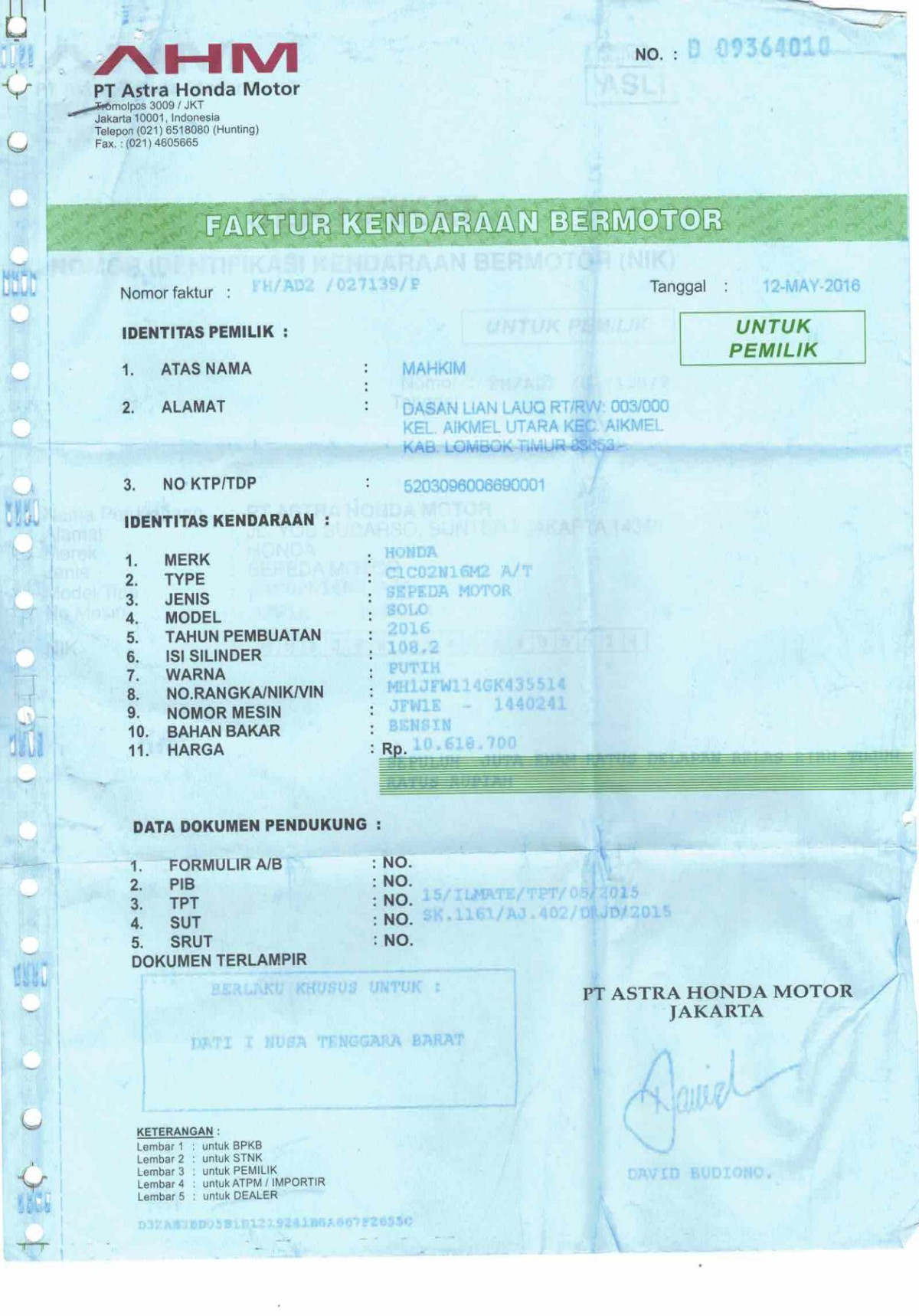 | KWT Blangko | : | Tidak Ada |