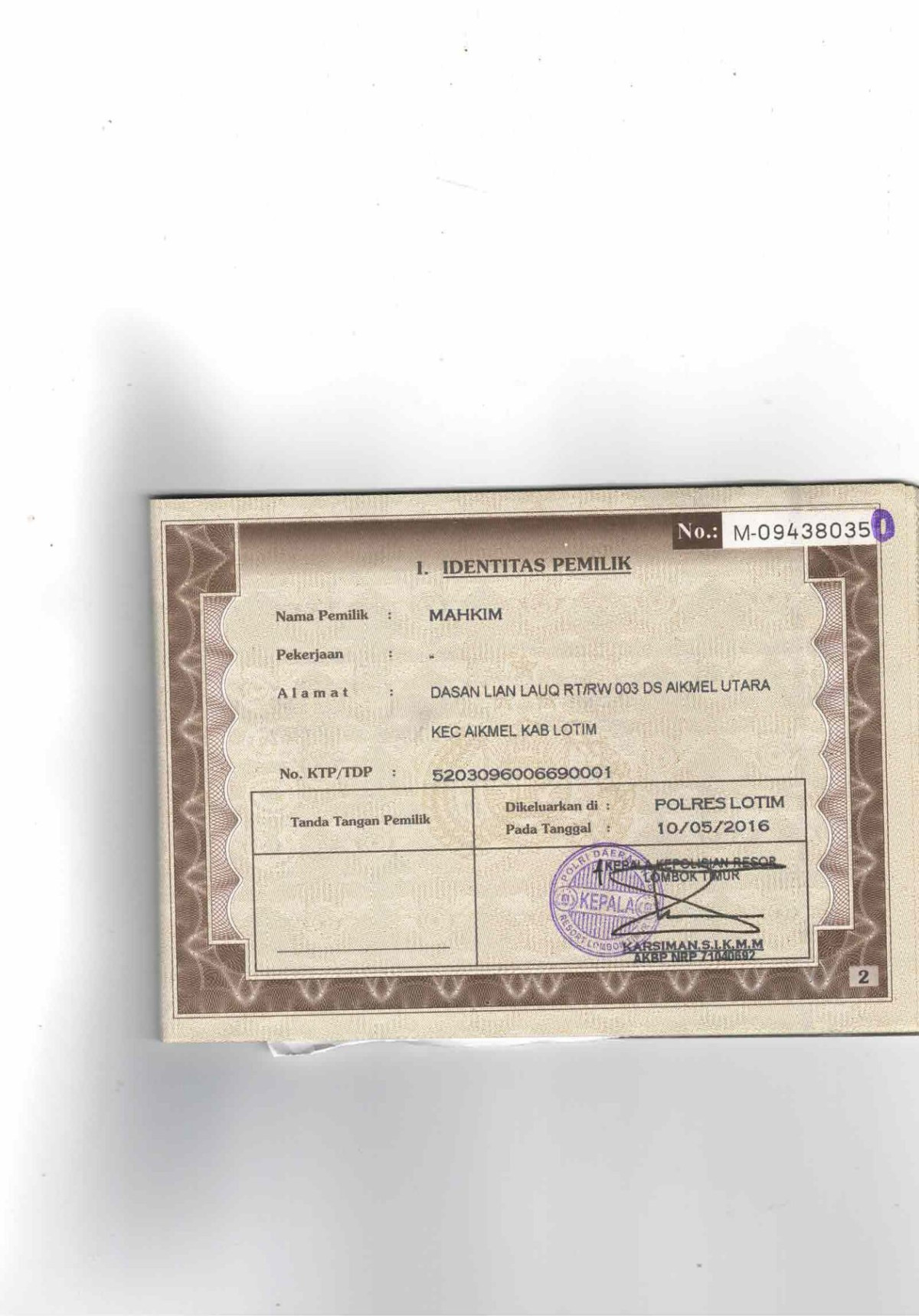 | FK. KTP | : | Tidak Ada |