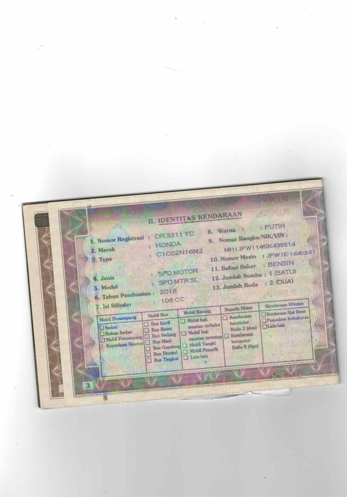| No. Polisi | : | DR 3311 YC |