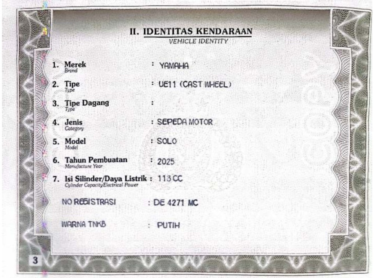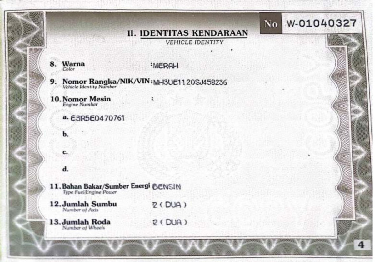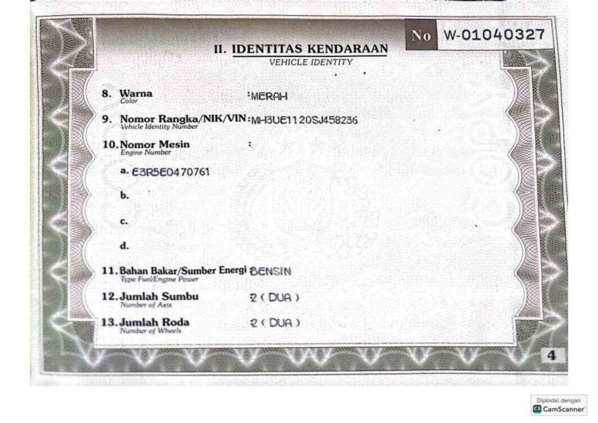 | No. Rangka | : | MH3UE1120SJ458236 |