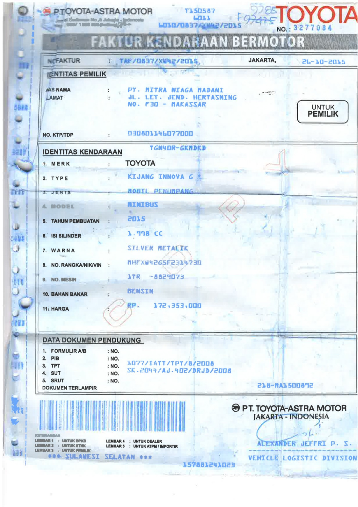 SEBELUM MELAKUKAN PENAWARAN UNIT PESERTA LELANG WAJIB MELAKUKAN PENGECEKAN UNIT DAN DOKUMEN TERLEBIH DAHULU // PIC AHMAD 082345278181 IKRAM 085241587738 // UNIT DIKENAKAN BIAYA PPN 1.1% DARI HARGA TERBENTUK // NOPOL FISIK T/A //