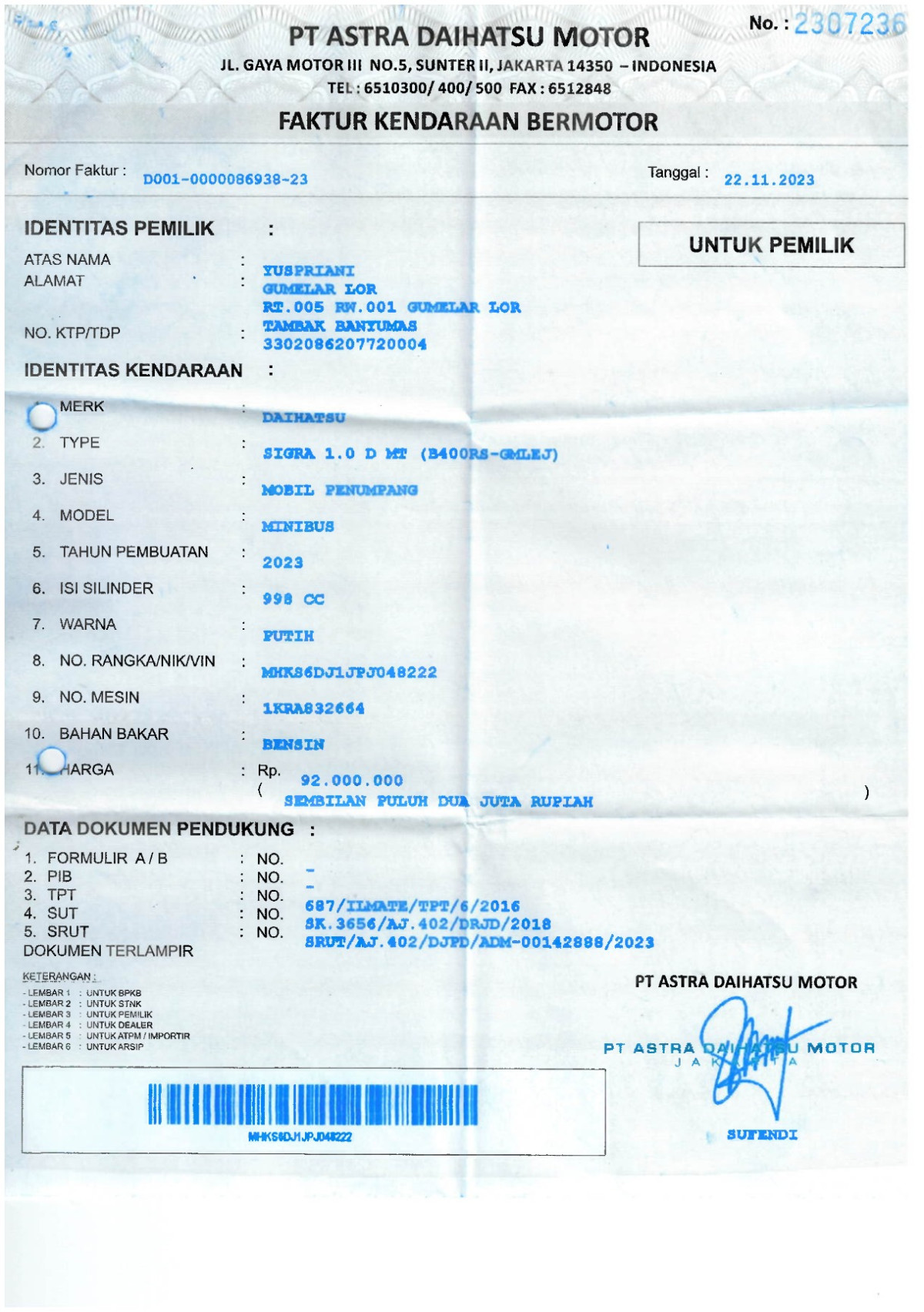 | No. Rangka | : | MHKS6DJ1JPJ048222 |