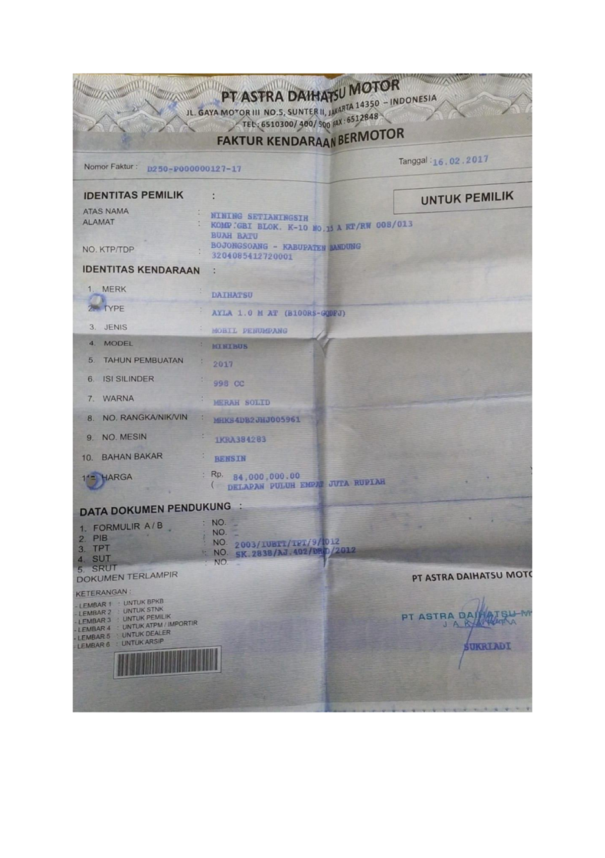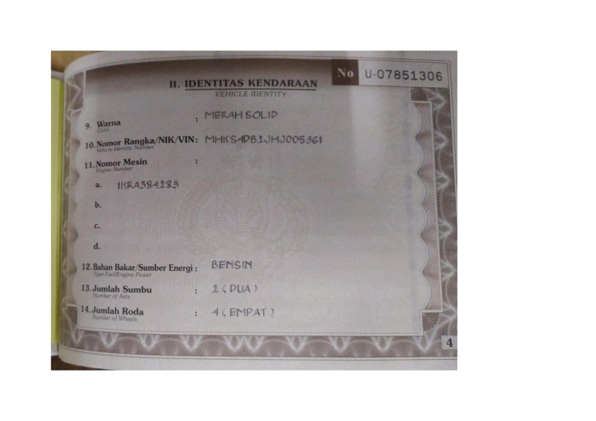 | No. Rangka | : | MHKS4DB2JHJ005961 |