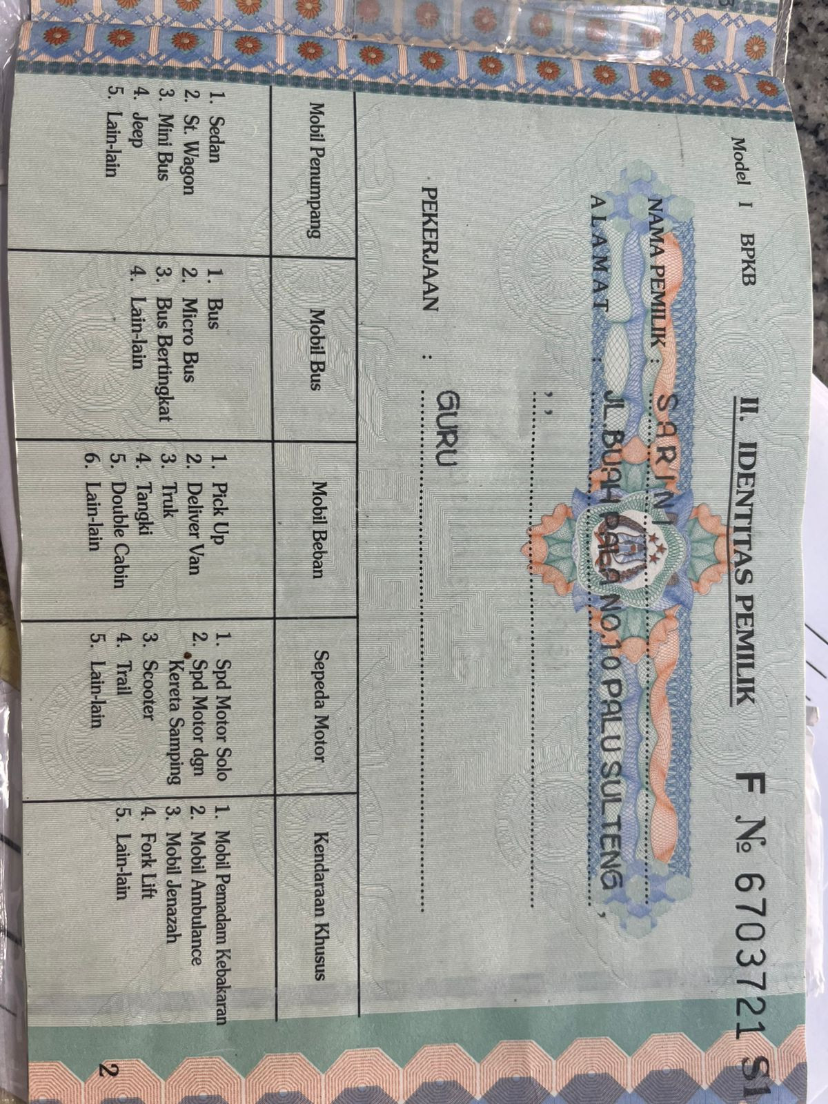 | KWT Blangko | : | Tidak Ada |