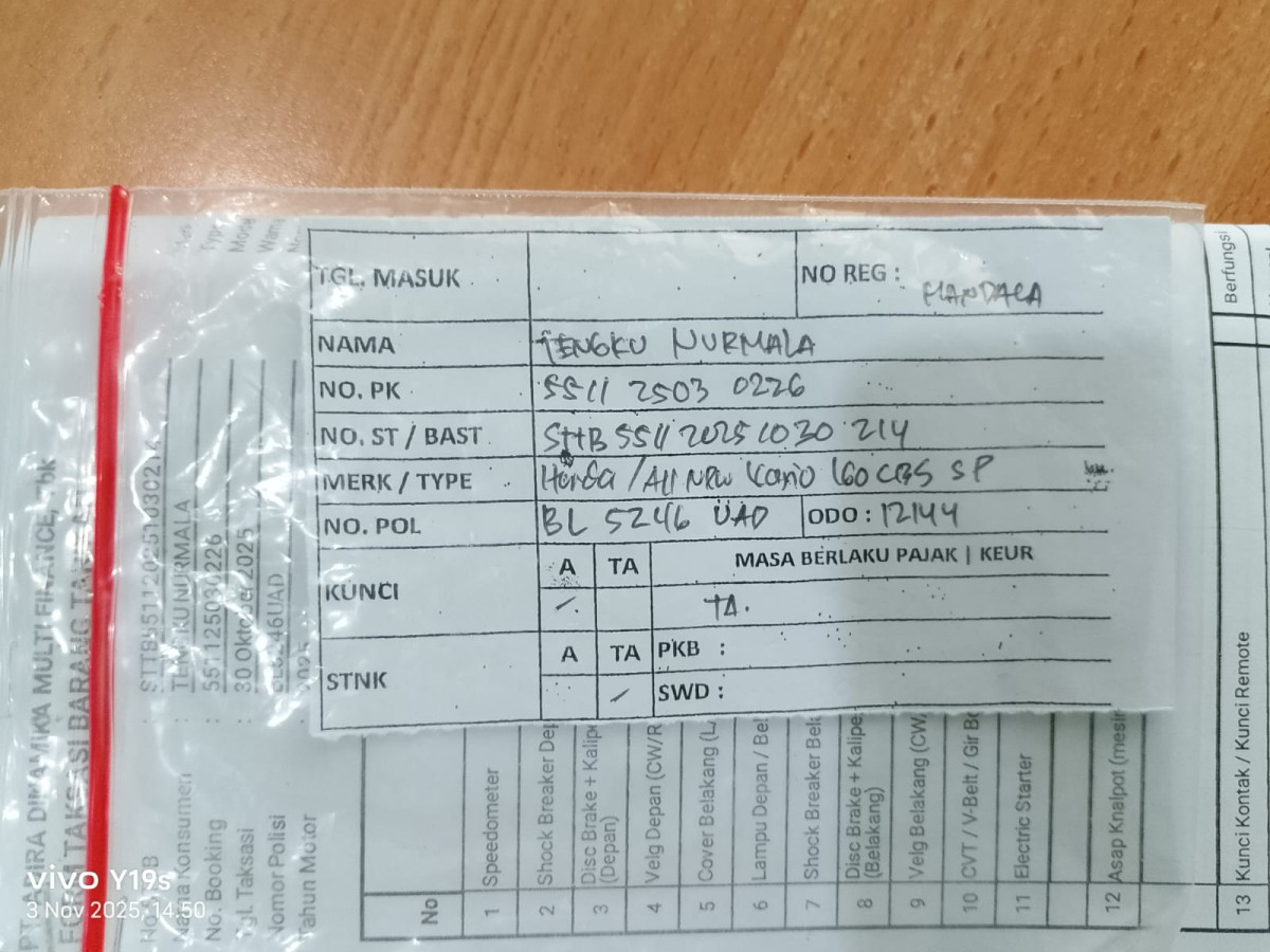 KM 12.144, MESIN NORMAL, SPION TDK ADA// UNIT TIDAK DILAKUKAN PENGECEKAN OLEH TIM SMARTBID// SEBELUM MELAKUKAN PENAWARAN HARAP CEK KONDISI UNIT DAN DOKUMEN TERLEBIH DAHULU// WAJIB MENGHUBUNGI PIC DAN DATANG KE LOKASI UNTUK PENGECEKAN UNIT// UNIT DILELANG APA ADANYA PERMASALAHAN YANG TIMBUL DILUAR TANGGUNG JAWAB SMARTBID// JIKA INGIN MENGAMBIL UNIT HARAP UNTUK KONFIRMASI DAHULU KE SMARTBID // JIKA YANG MENGAMBIL BIDDER HARAP MEMBAWA KTP ASLI// PENGAMBILAN UNIT H+2 HARI KERJA SETELAH PELUNASAN// FOTO NOKA DAN NOSIN TA.//